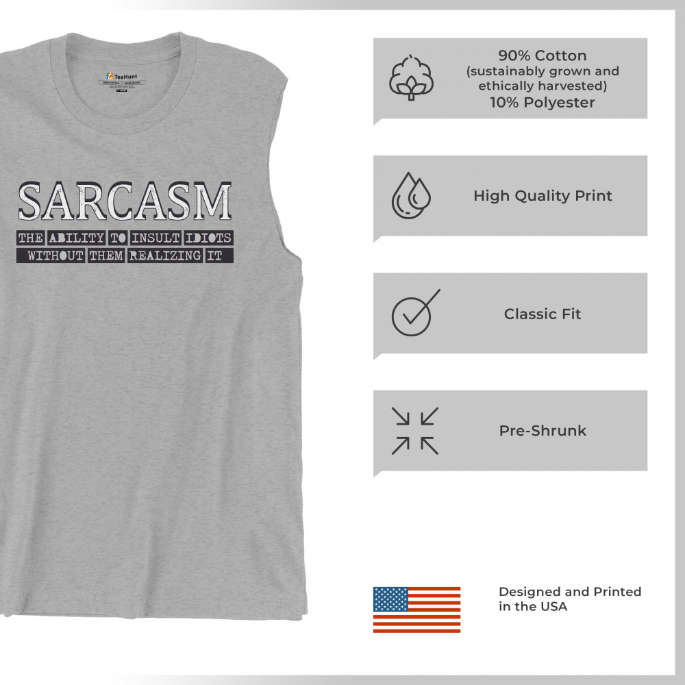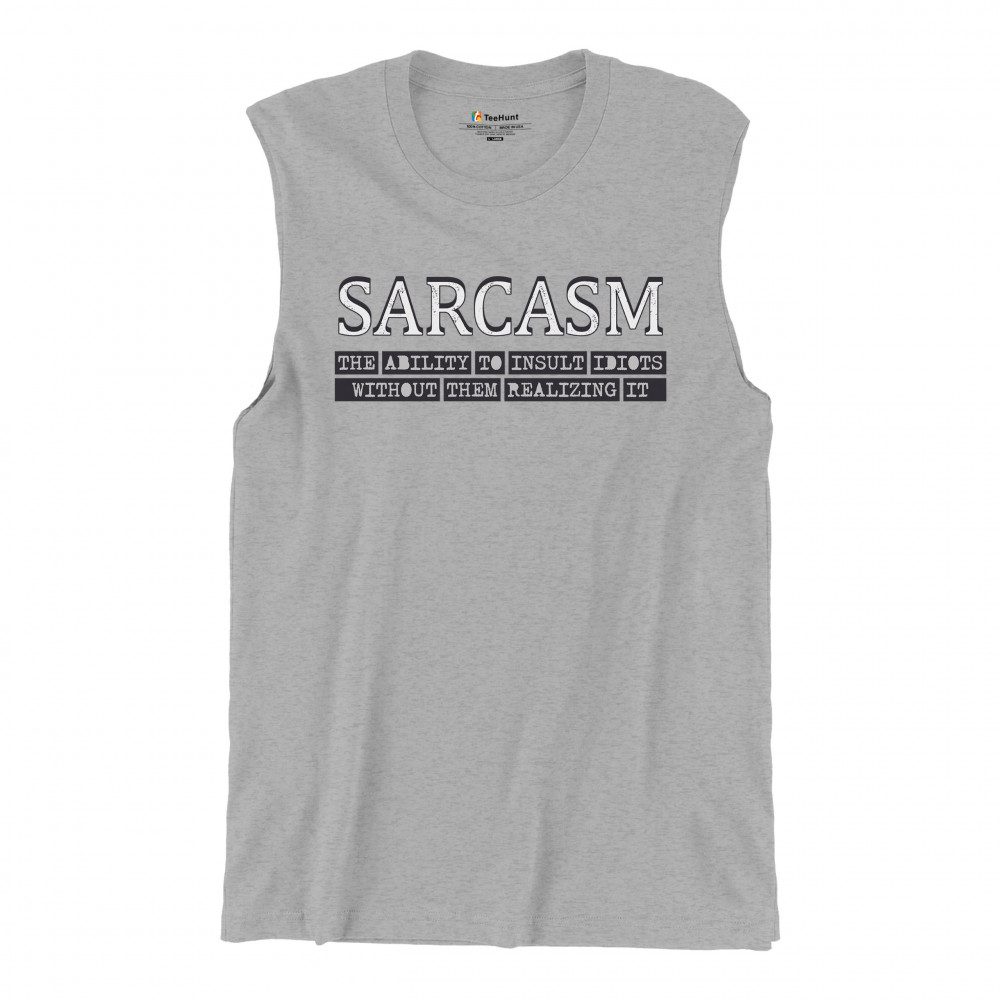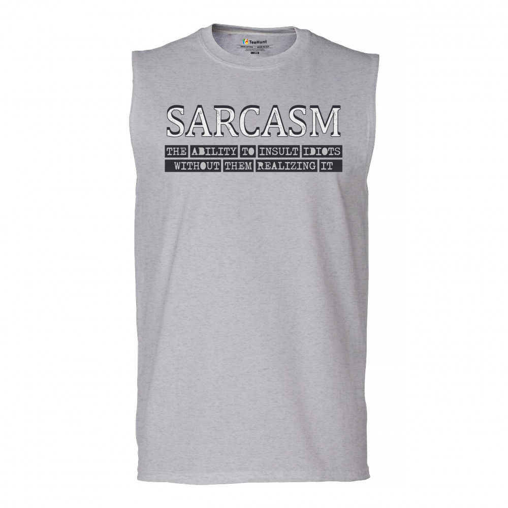 SARCASM muscle shirt ability to insult idiots without them realizing men's gray