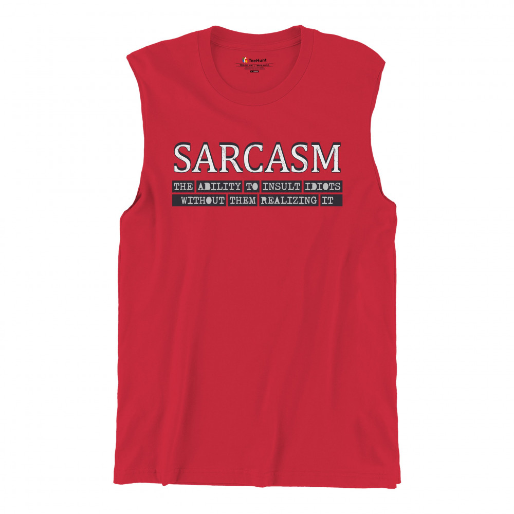 SARCASM muscle shirt ability to insult idiots without them realizing men's red