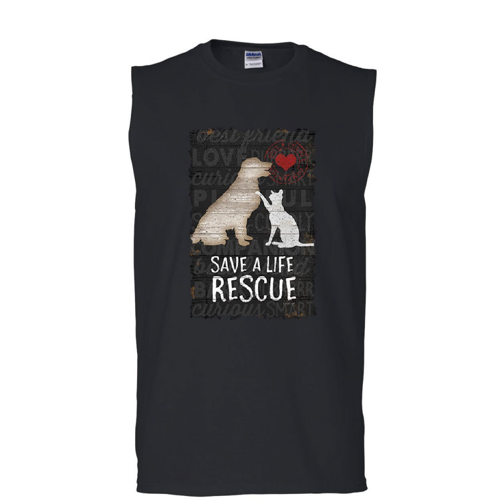 SAVE A LIFE rescue a pet muscle shirt dog cat kitty puppy shelter paw sleeveless black