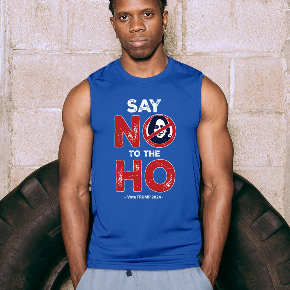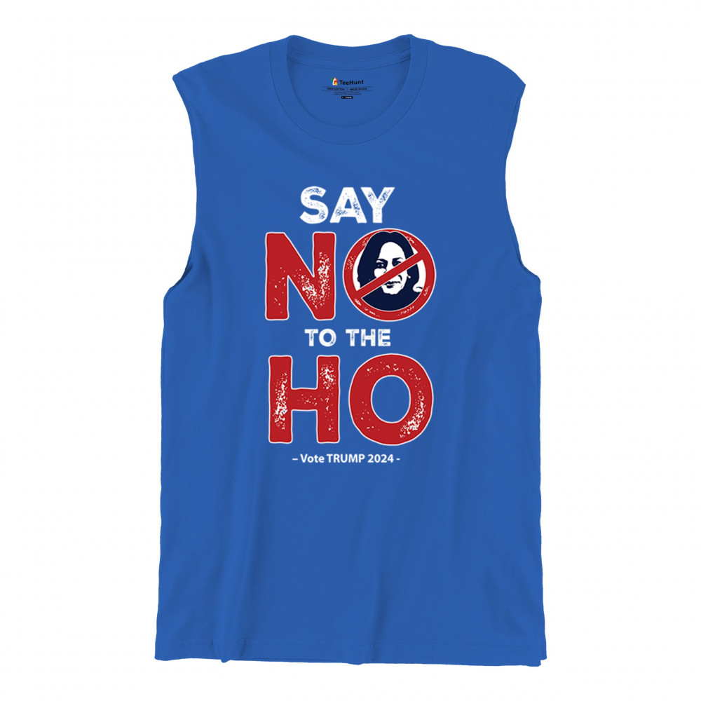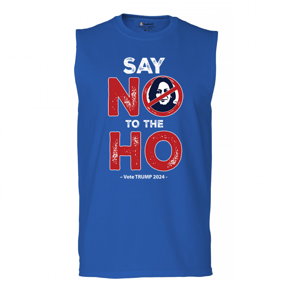 Show your conservative spirit with the "Say No to the Ho" print, perfect for rallies or daily wear. Support Trump-Vance 2024 and Make America Great Again.