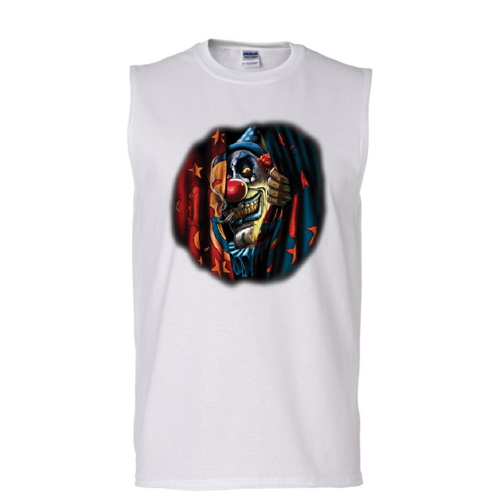 SCARY CIRCUS CLOWN muscle shirt insane creepy clown evil mad horror sleeveless white