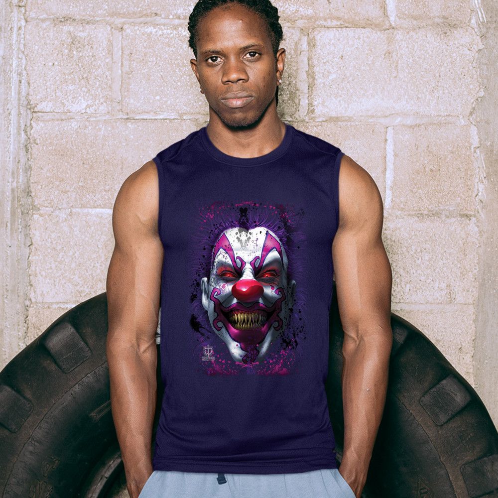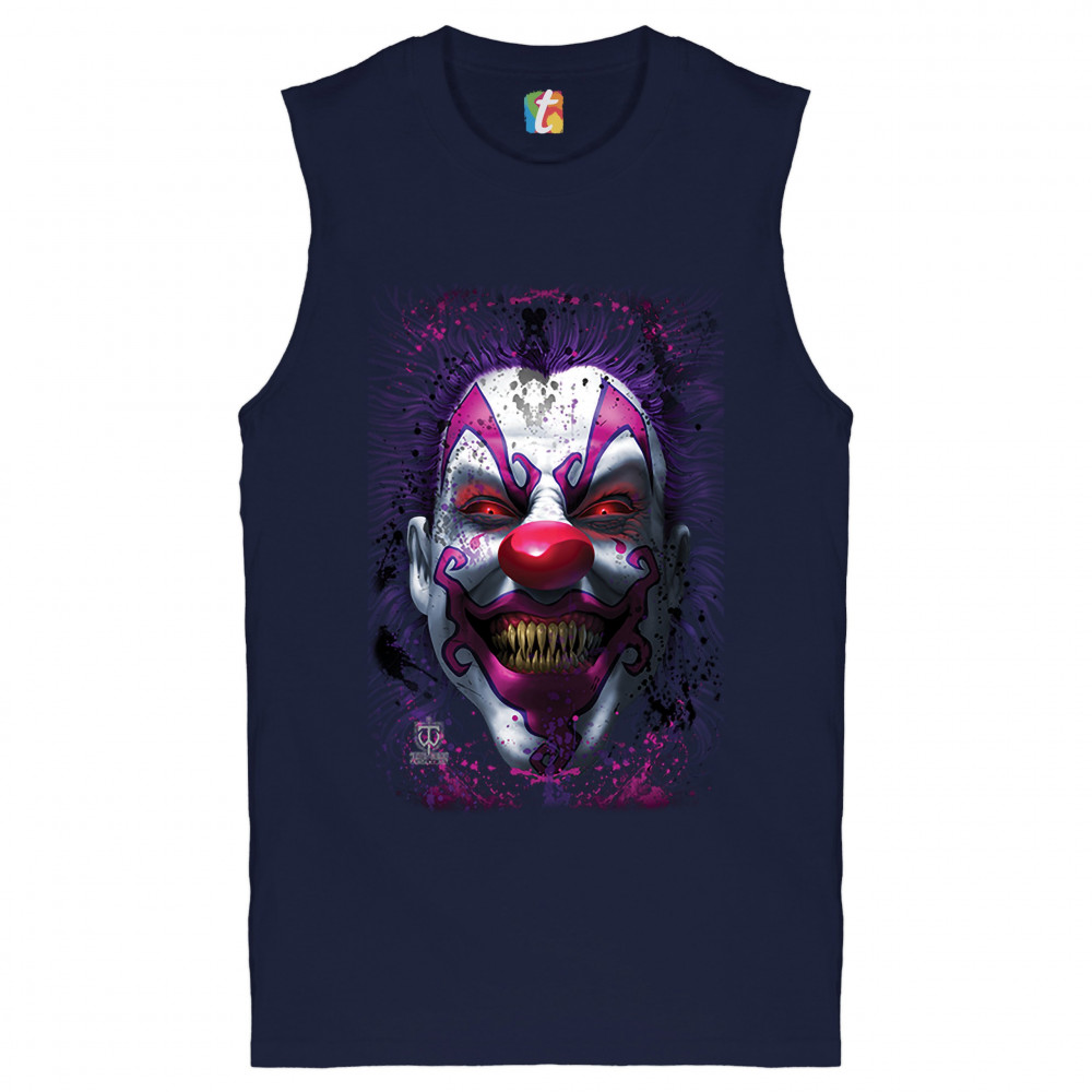 SCARY CREEPY GRINNING CLOWN muscle shirt spooky halloween horror men's navy blue