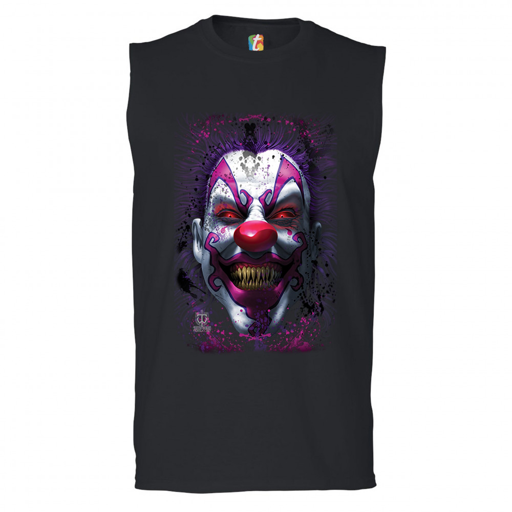 SCARY CREEPY GRINNING CLOWN muscle shirt spooky halloween horror men's black