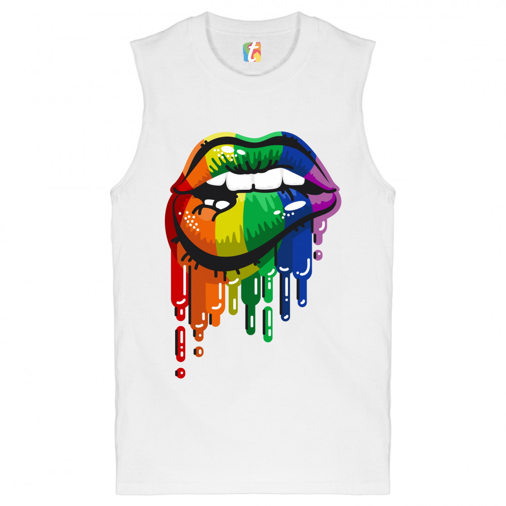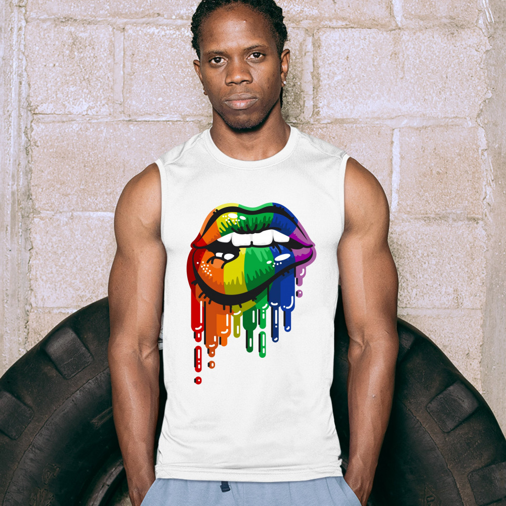 SEXY MELTING RAINBOW LIPS muscle shirt lgbt queer gay pride love wins men's white