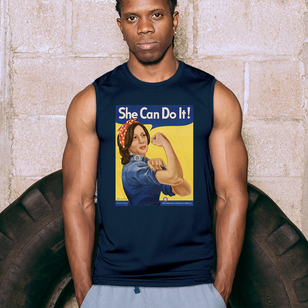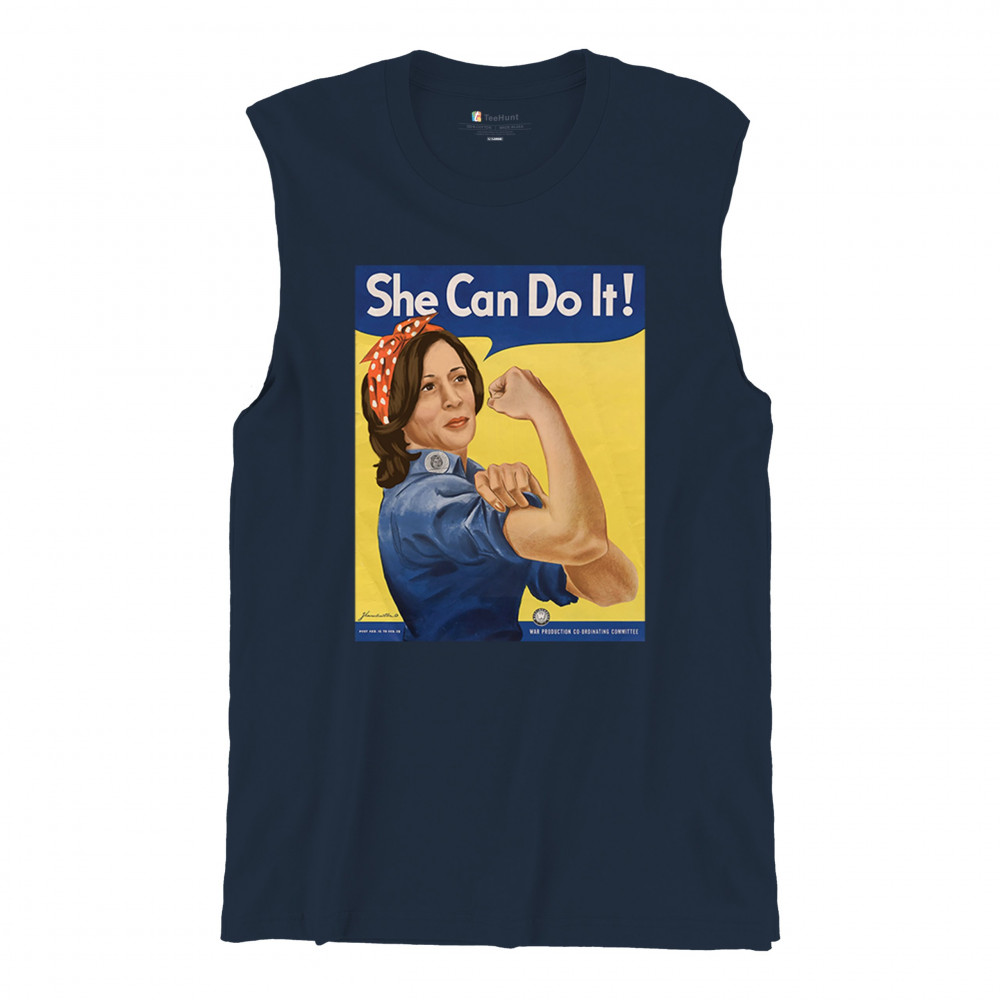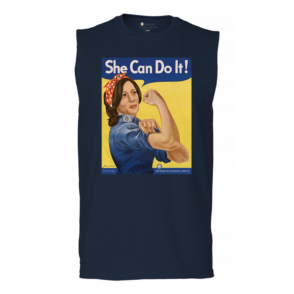 Show your support for Kamala Harris in 2024 with this empowering "She Can Do It!" design. Inspired by Rosie the Riveter, it symbolizes strength, equality, and progress.