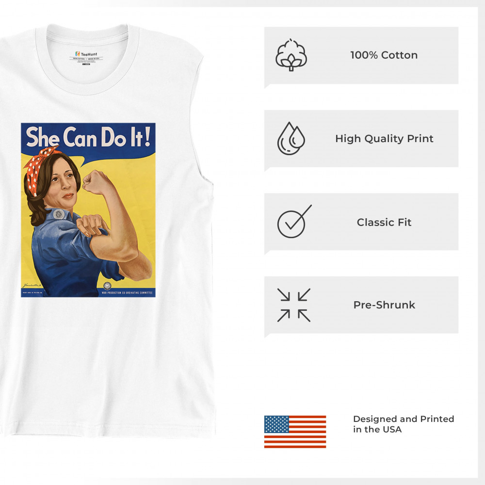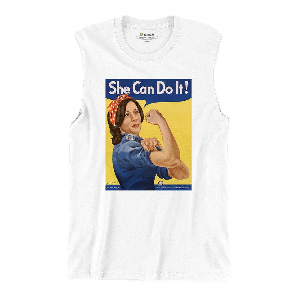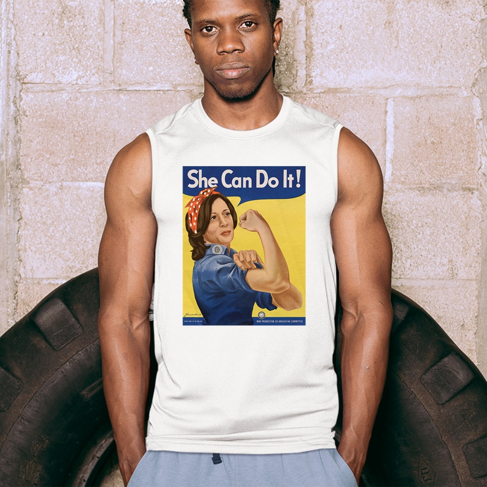 Show your support for Kamala Harris in 2024 with this empowering "She Can Do It!" design. Inspired by Rosie the Riveter, it symbolizes strength, equality, and progress.