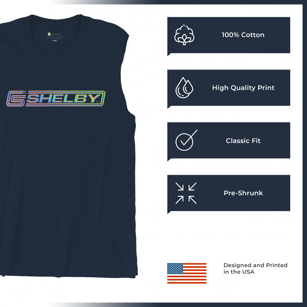 This holographic Shelby logo is an electrifying salute to an enduring legend of the American racetrack. It embodies the storied history of Carroll Shelby's vision, from the powerful drag of a GT350 to the robust growl of a GT500. Embrace the drift and drive that has defined the Mustang, captured in apparel that's perfect for any enthusiast's collection—be it a tshirt, hoodie, hat, or jacket. This licensed design honors years of muscle innovation, a true gift for the die-hard fan.
