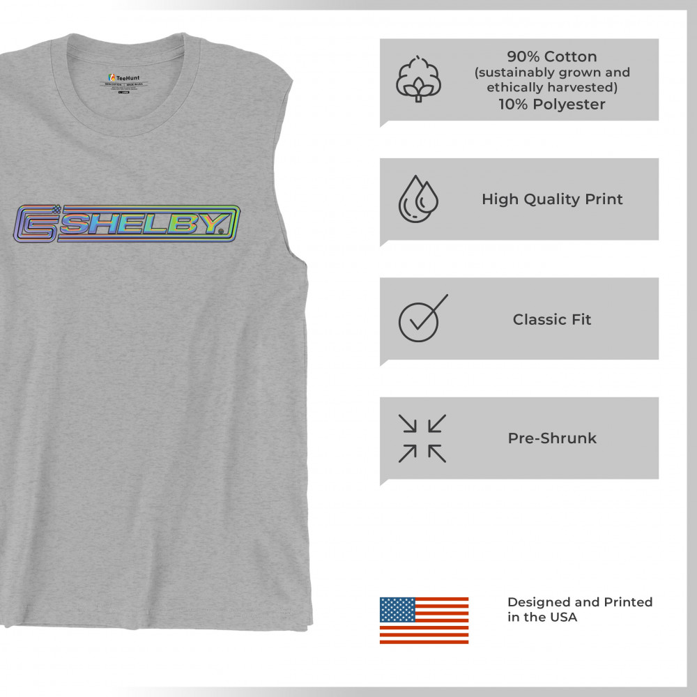 This holographic Shelby logo is an electrifying salute to an enduring legend of the American racetrack. It embodies the storied history of Carroll Shelby's vision, from the powerful drag of a GT350 to the robust growl of a GT500. Embrace the drift and drive that has defined the Mustang, captured in apparel that's perfect for any enthusiast's collection—be it a tshirt, hoodie, hat, or jacket. This licensed design honors years of muscle innovation, a true gift for the die-hard fan.