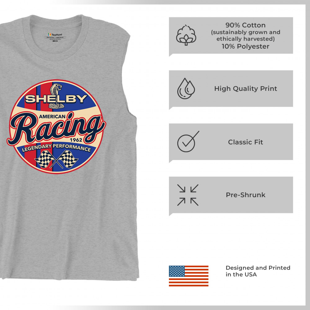 Rev up your wardrobe with our Shelby American Racing design, a tribute to 50 years of Ford Mustang glory and Carroll Shelby's racing legacy.