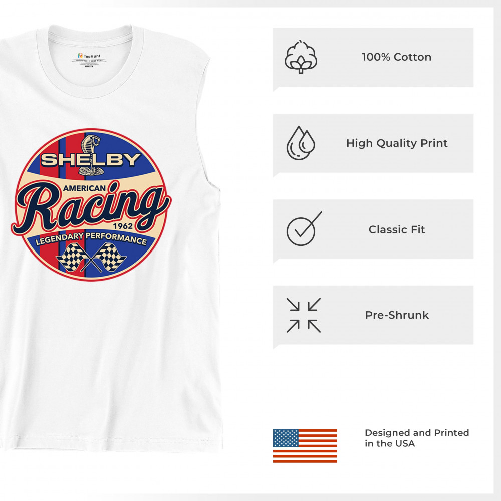 Rev up your wardrobe with our Shelby American Racing design, a tribute to 50 years of Ford Mustang glory and Carroll Shelby's racing legacy.