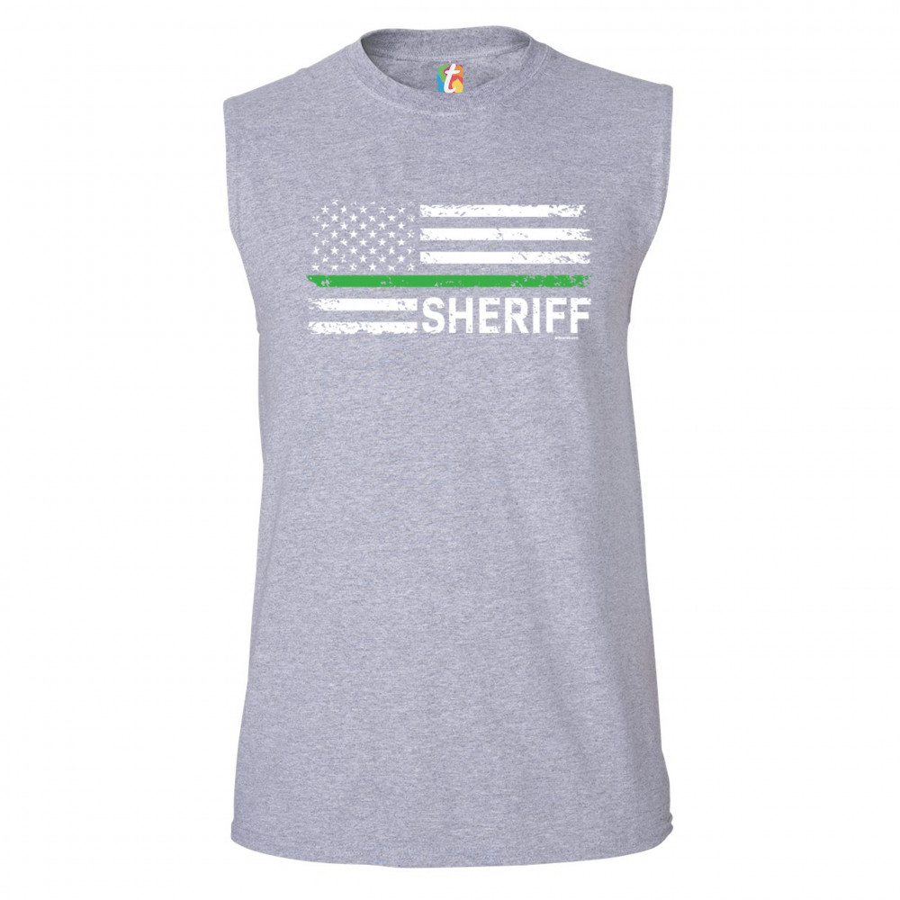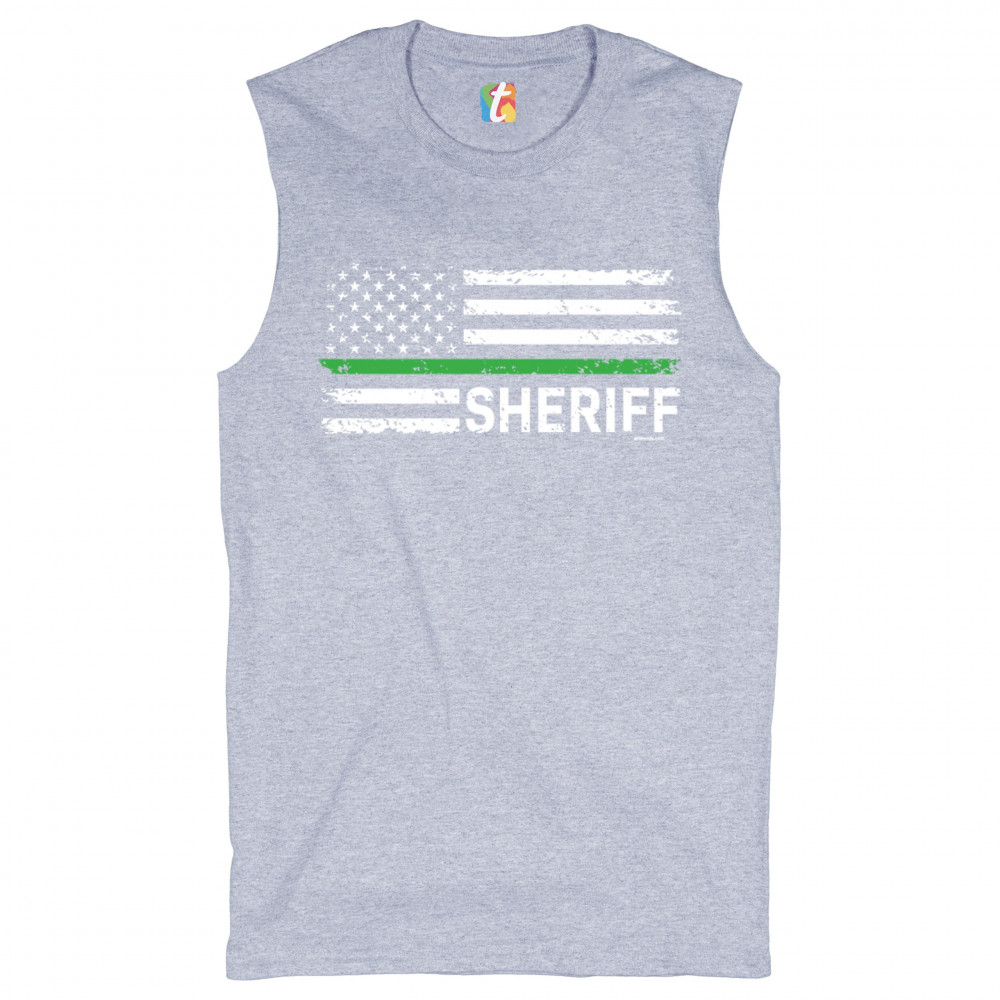 SHERIFF DISTRESSED AMERICAN FLAG muscle shirt first responders patriotic men's gray