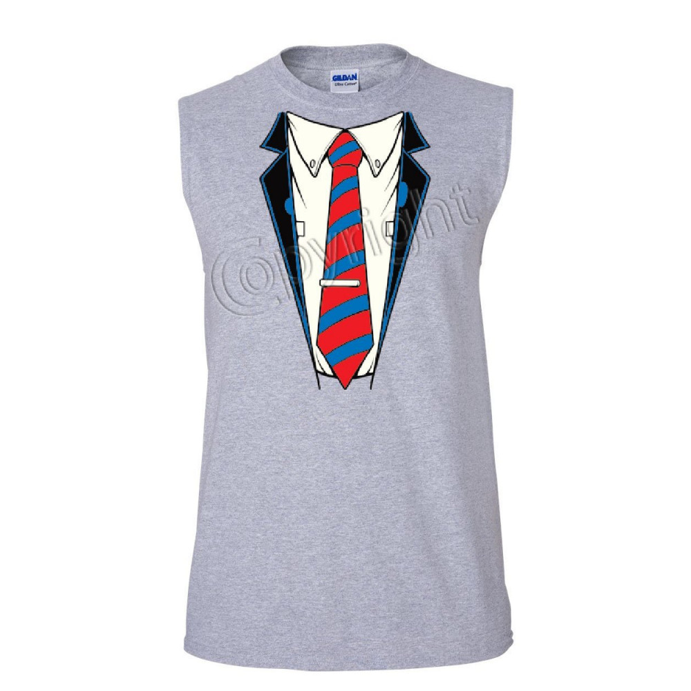 SHIRT AND TIE muscle shirt office suit casual funny sleeveless gray