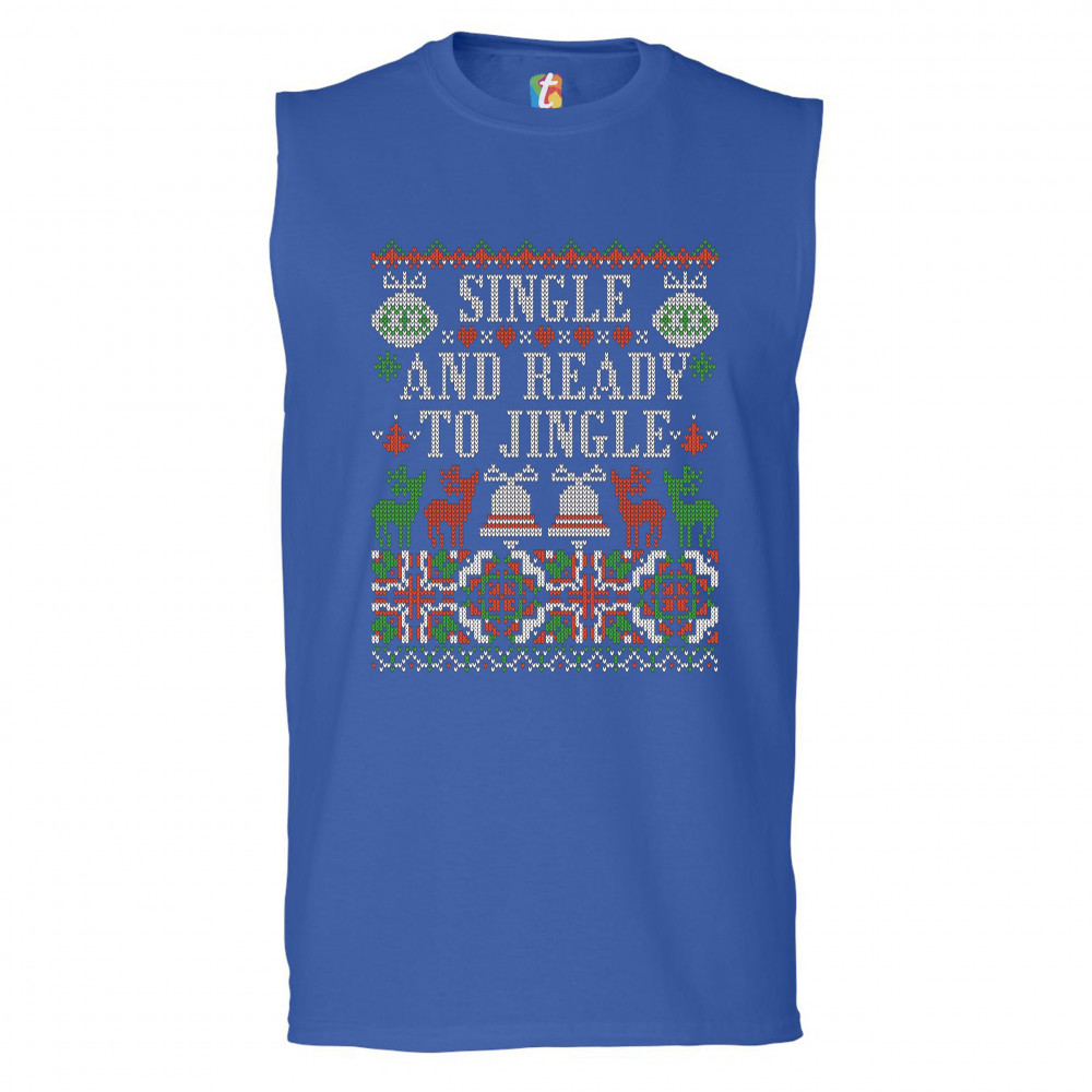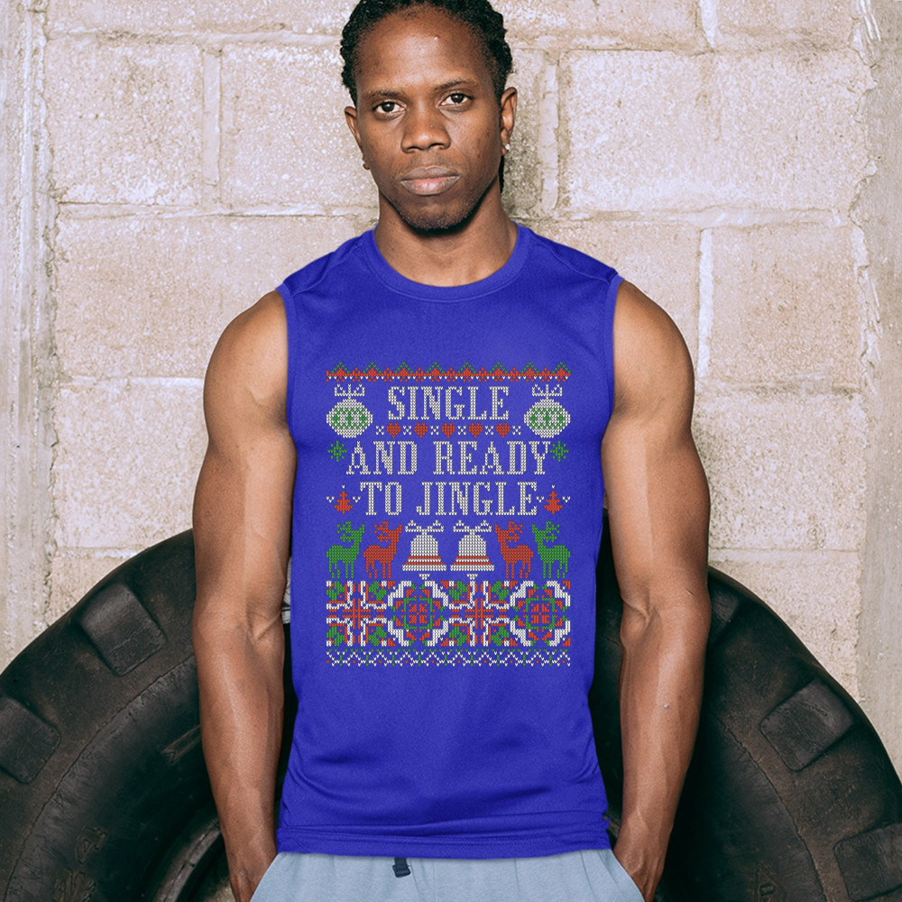 SINGLE AND READY TO JINGLE muscle shirt merry christmas ugly sweater men's royal blue