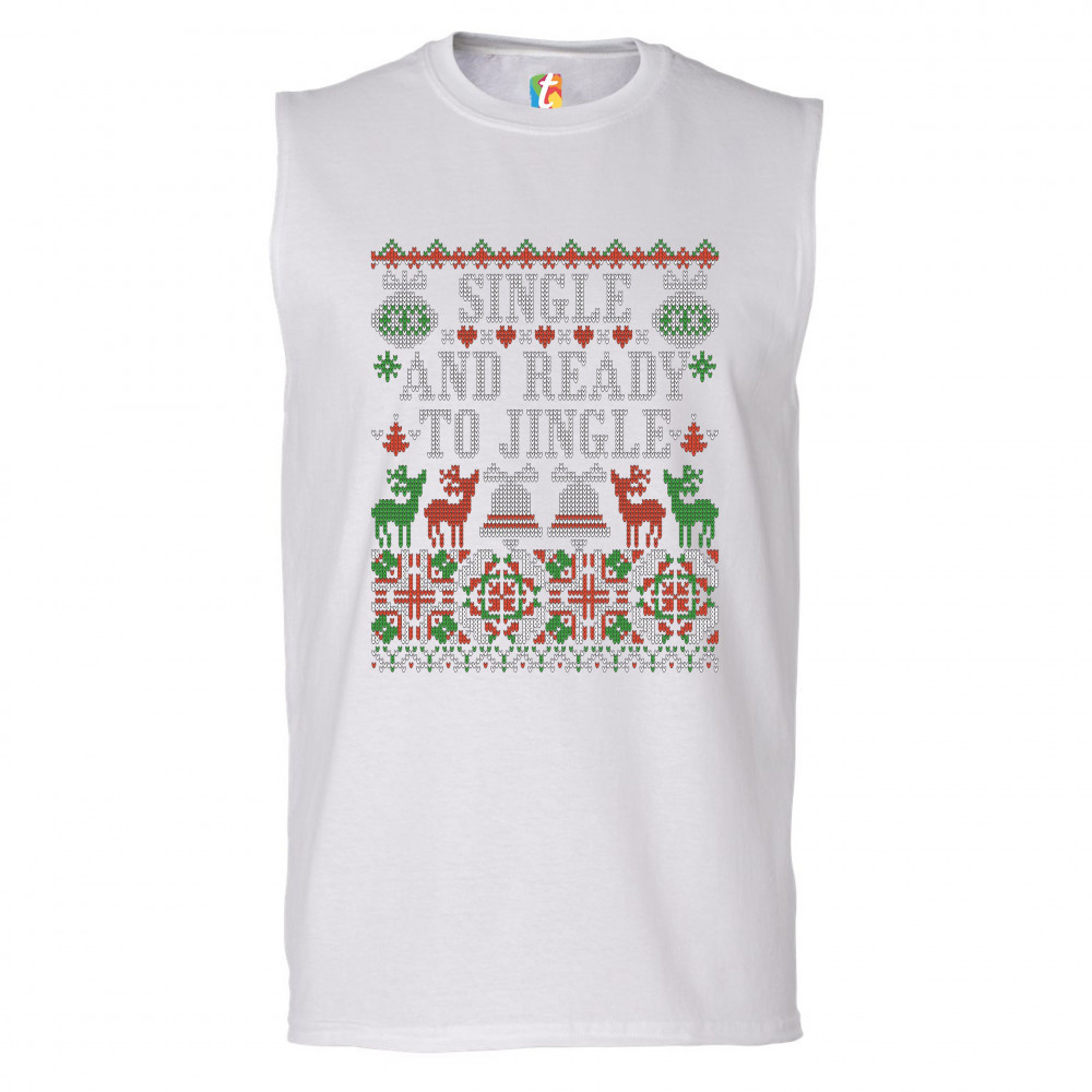 A print saying: "Single and Ready to Jingle" and featuring four reindeers and two Christmas bells. The print is designed as an ugly sweater. Amazing choice for a single person who wants to make people smile and spread positive vibes on Christmas Eve.