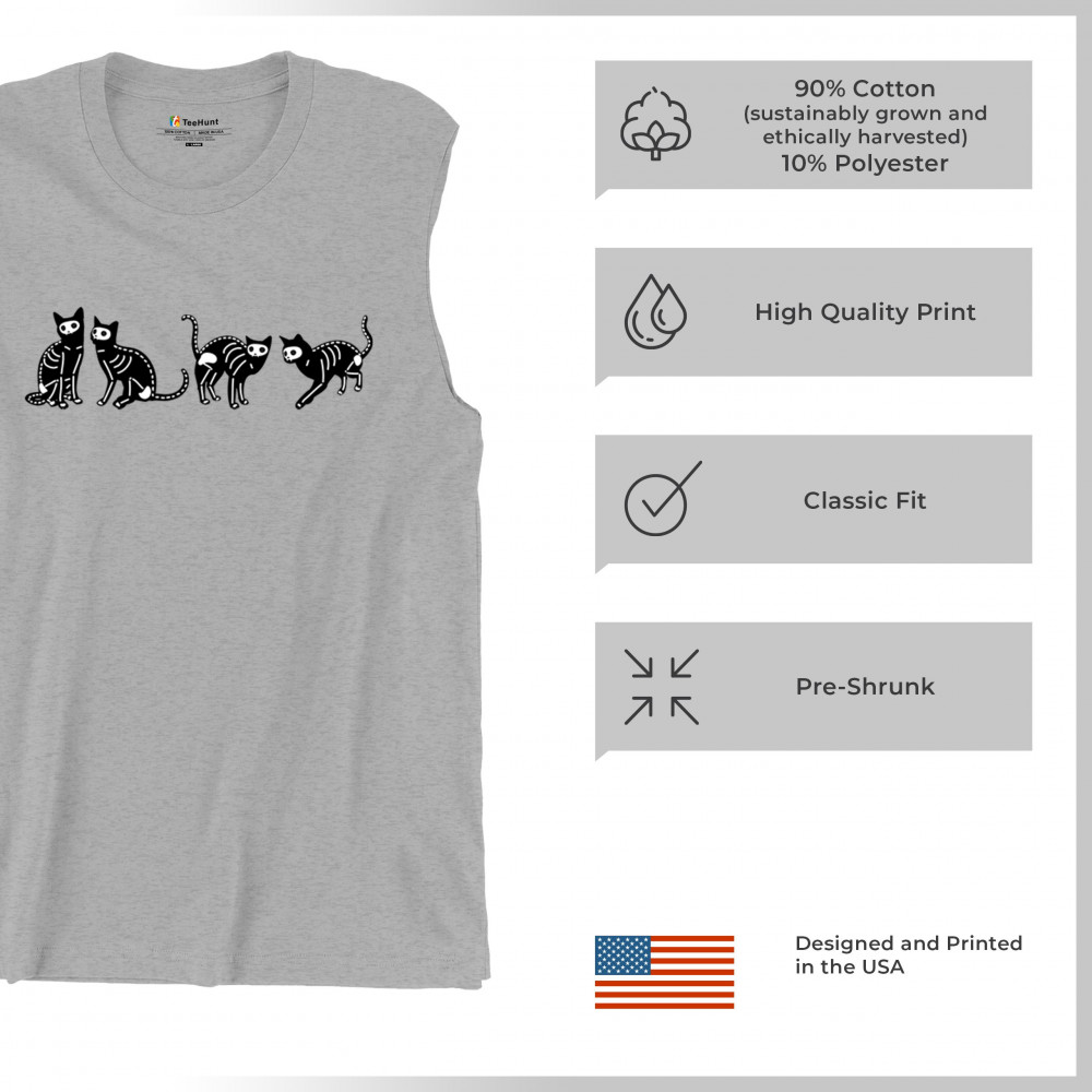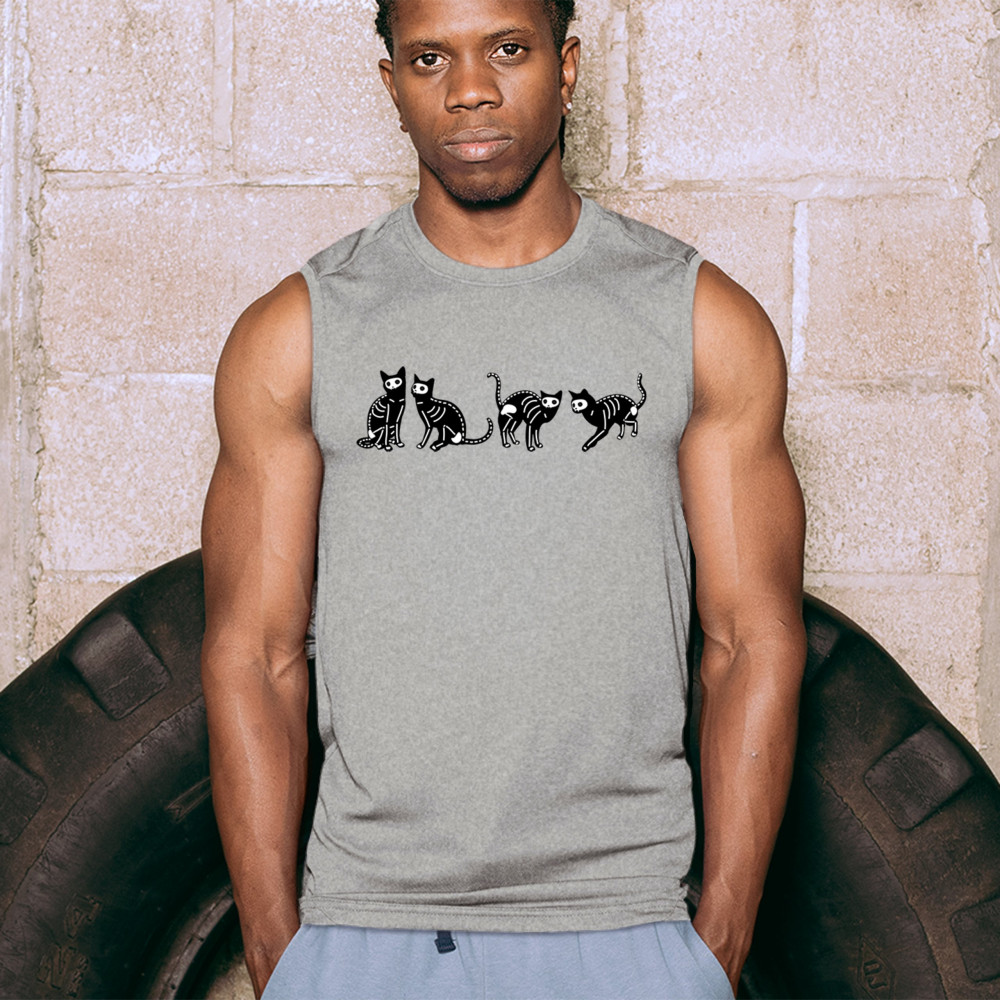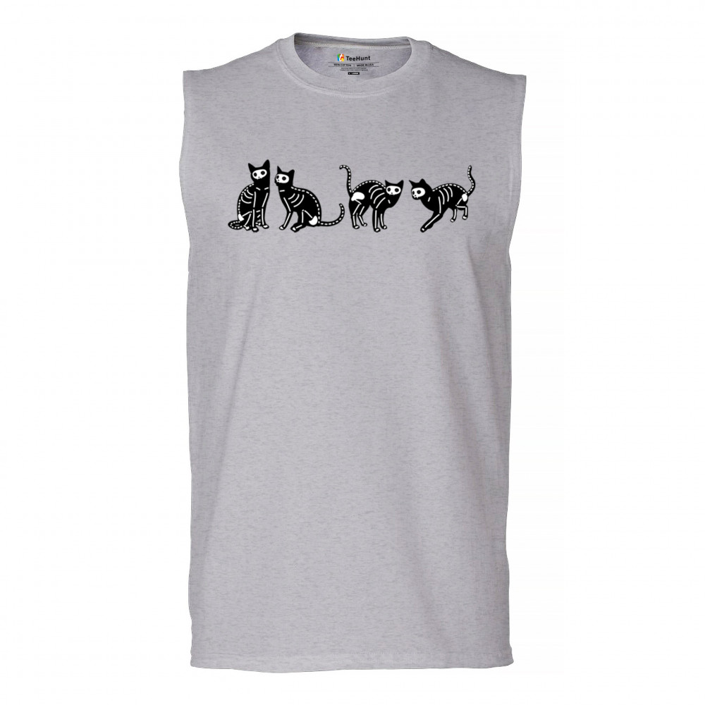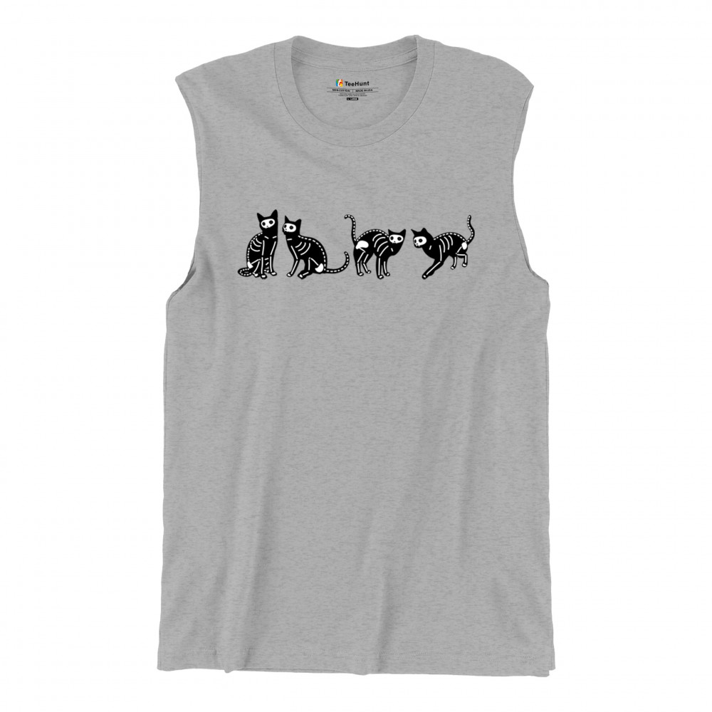 SKELETON CATS men's muscle shirt spooky halloween trick or treat candy bag gray