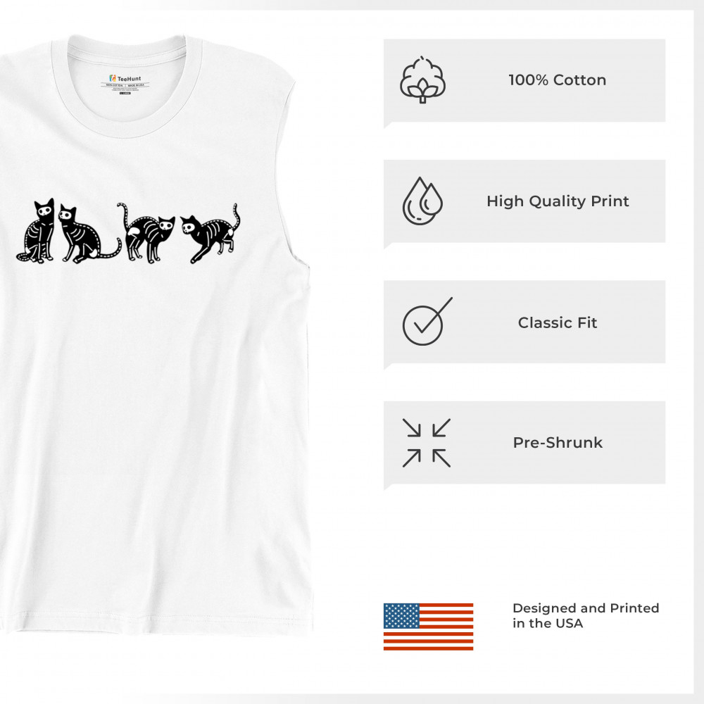 Spooky skeleton cat design for Halloween fans. Perfect for haunted houses, scary Jack o Lantern nights, creepy costumes, and trick-or-treat fun.