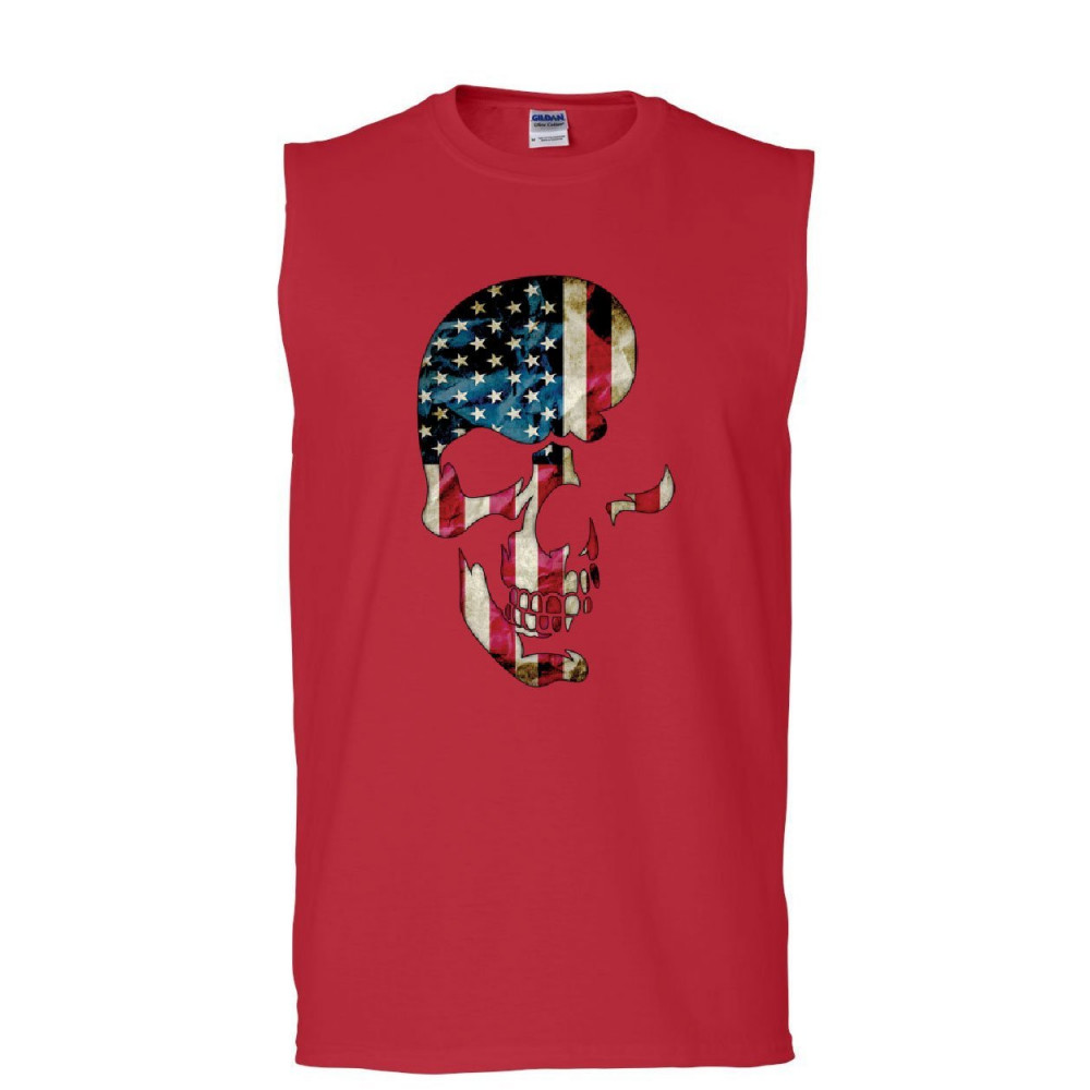 SKULL AMERICANA muscle shirt patriotic 4th of july stars and stripes sleeveless red
