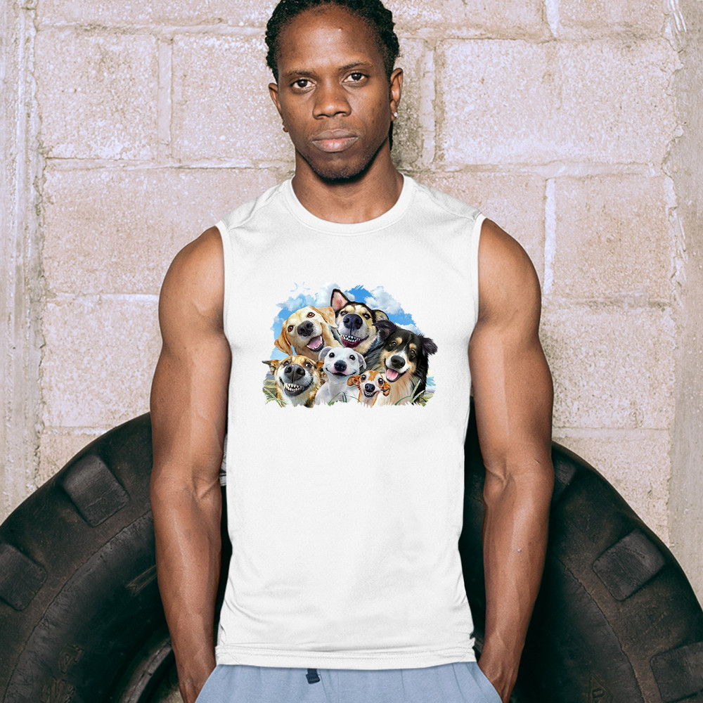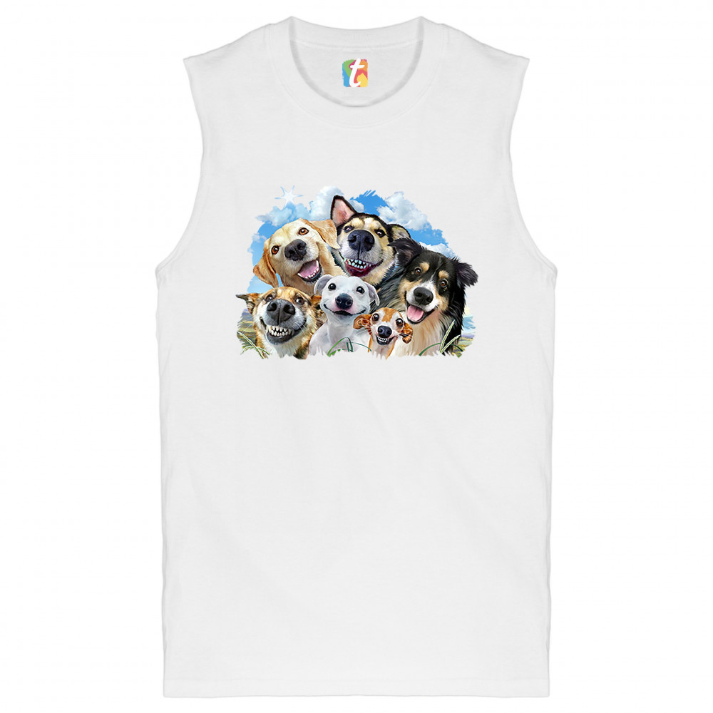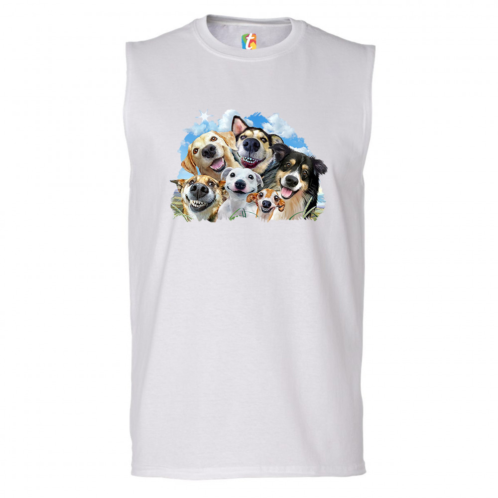 SMILING DOGS' SELFIE muscle shirt funny animal dog lover cute puppies men's white