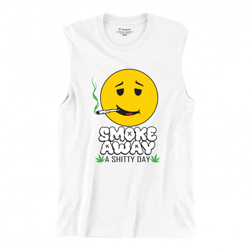 Smiley face with joint and “Smoke Away a Sh*tty Day†message. A perfect cannabis design for stoners, chillers, and sarcastic stress relief.