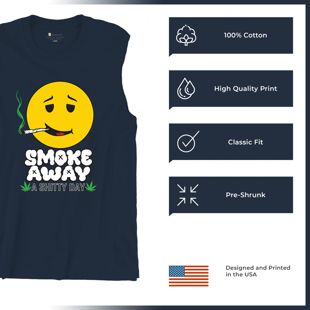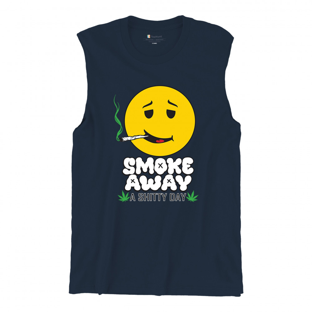 Smiley face with joint and “Smoke Away a Sh*tty Day†message. A perfect cannabis design for stoners, chillers, and sarcastic stress relief.