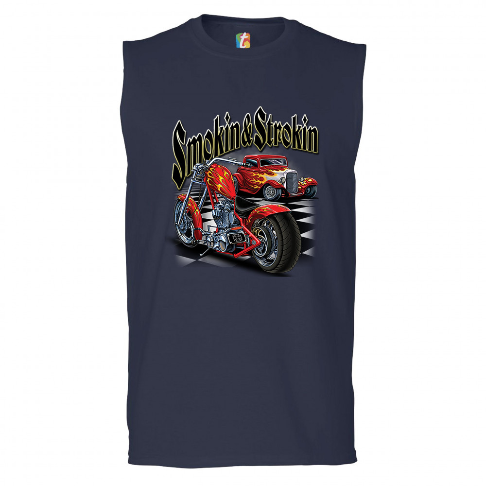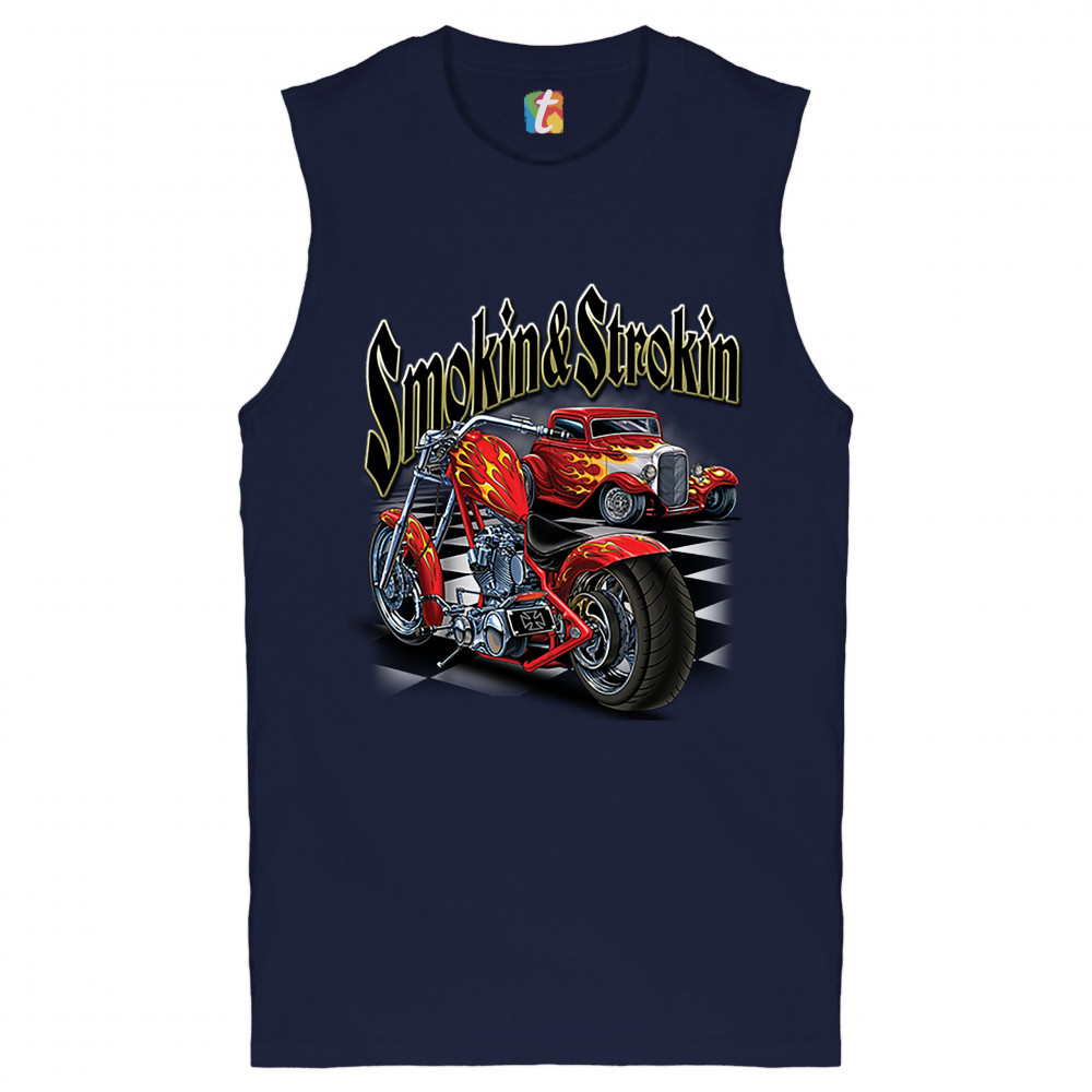 SMOKIN & STROKIN muscle shirt chopper biker hot rod live to ride men's navy blue