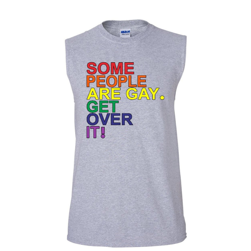 SOME PEOPLE ARE GAY. GET OVER IT! muscle shirt lgbtq pride rainbow sleeveless gray