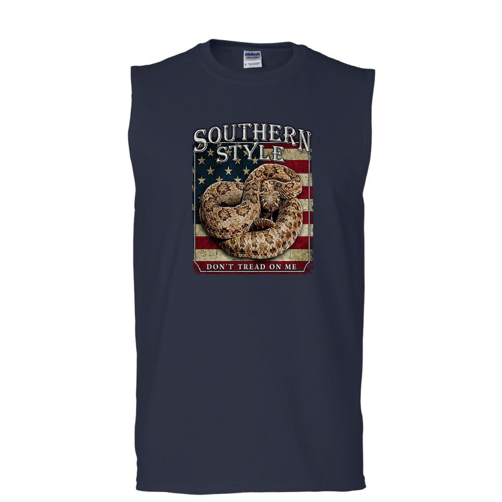 SOUTHERN STYLE RATTLESNAKE muscle shirt don't tread on me gadsden usa sleeveless navy blue