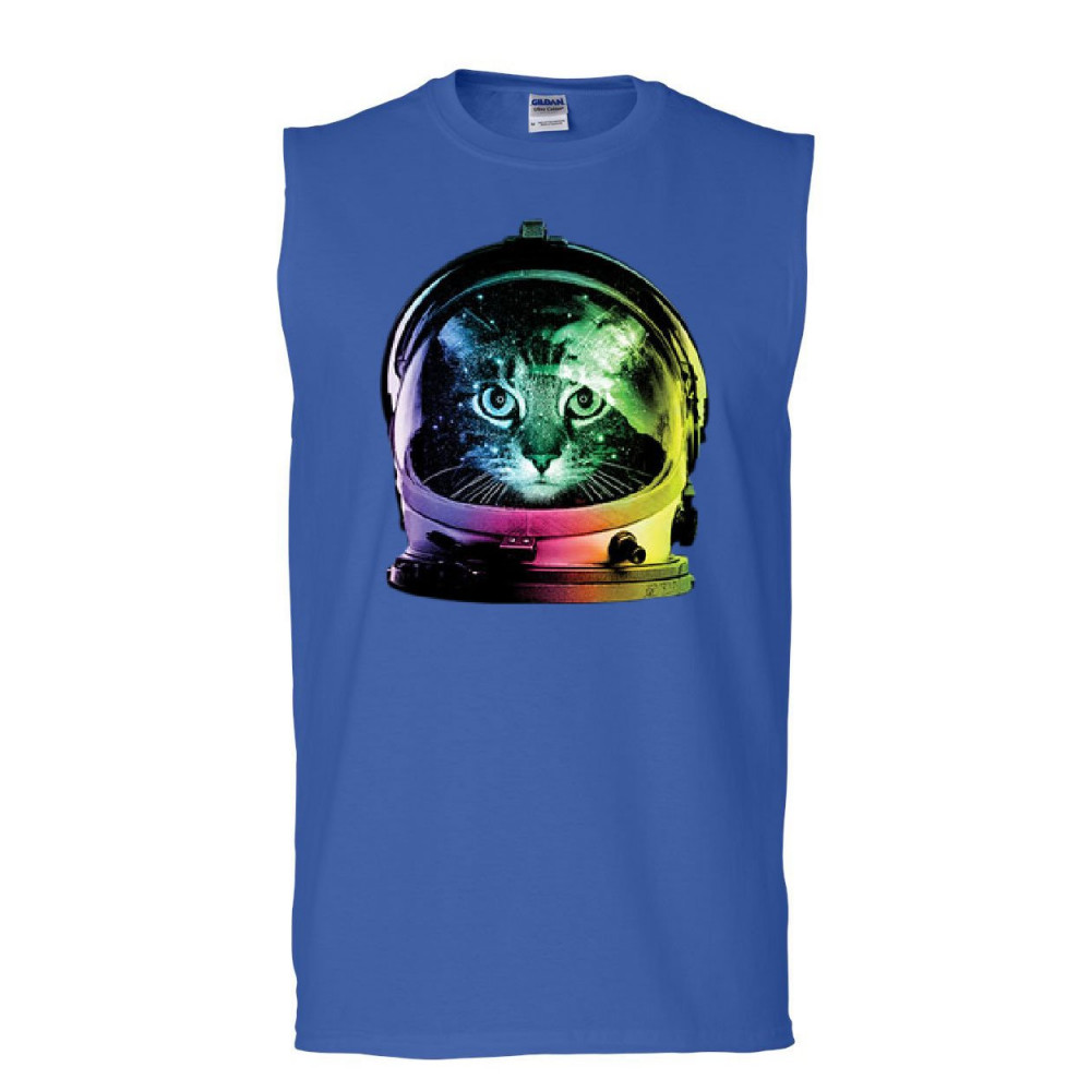 SPACE CAT muscle shirt astronaut kitten neon galaxy blue