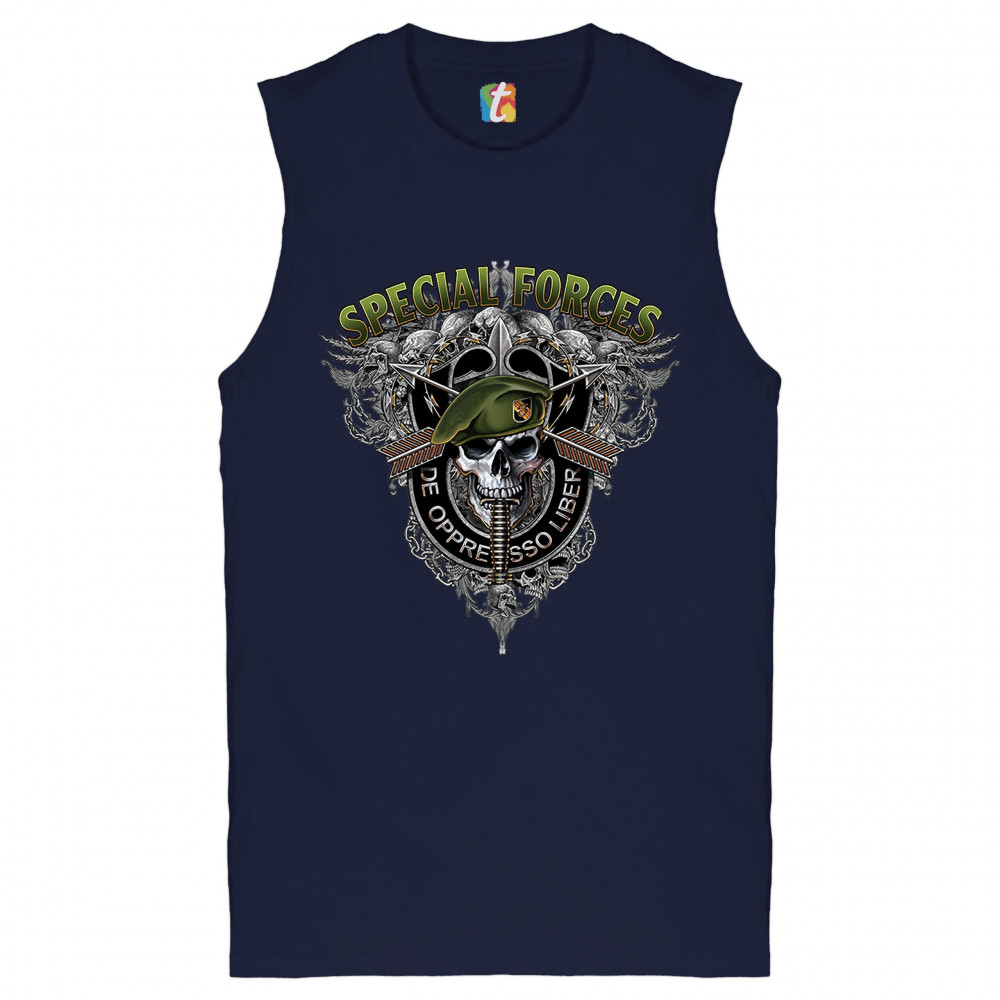 SPECIAL FORCES DE OPPRESSO LIBER muscle shirt us military green berets men's navy blue