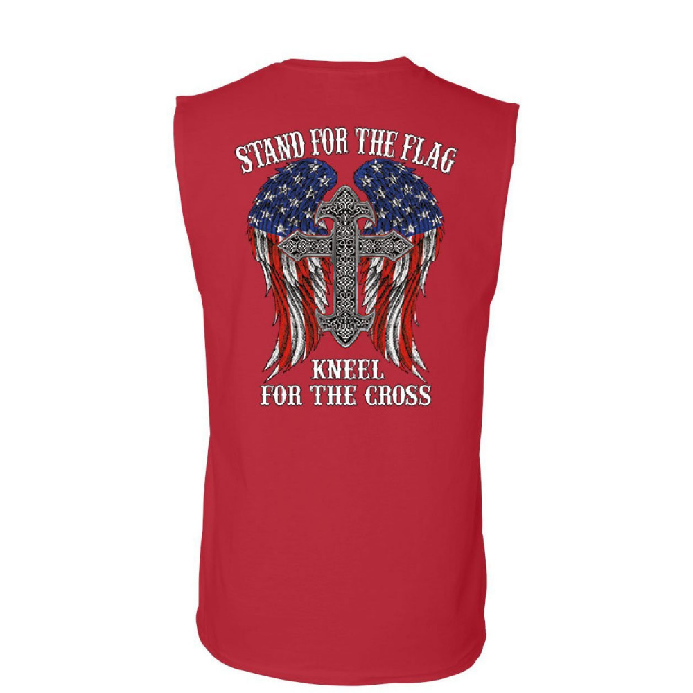 STAND FOR THE FLAG KNEEL FOR THE CROSS muscle shirt patriot political sleeveless red