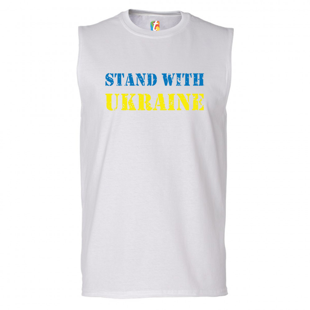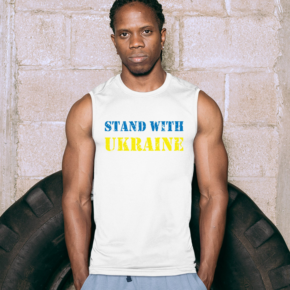 STAND WITH UKRAINE muscle shirt stop war support ukrainians men's white