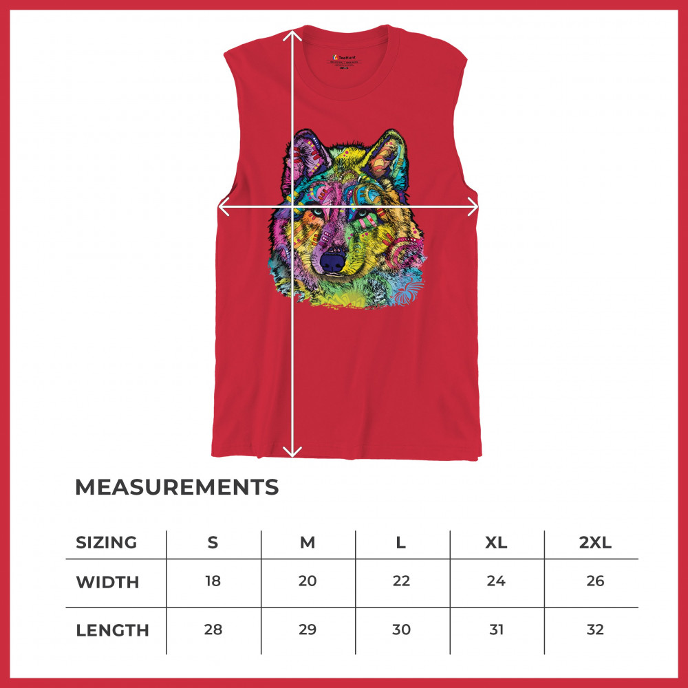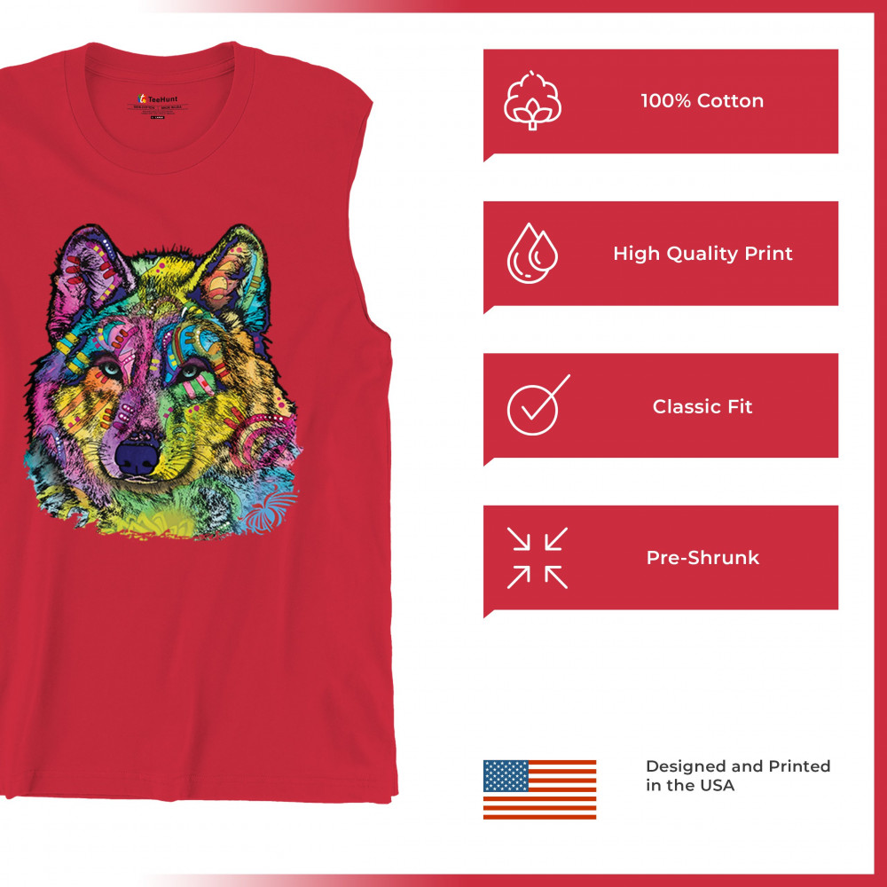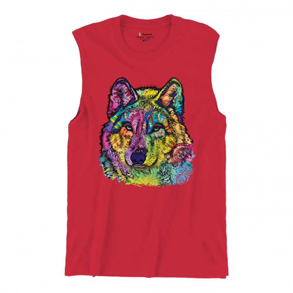 STARE OF THE WOLF muscle shirt dean russo colorful neon animal art men's red
