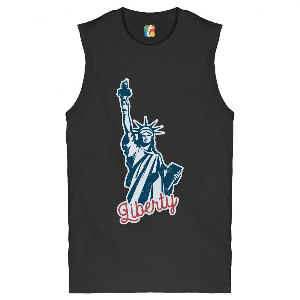 STATUE OF LIBERTY muscle shirt freedom independence 4th of july nyc usa men's black