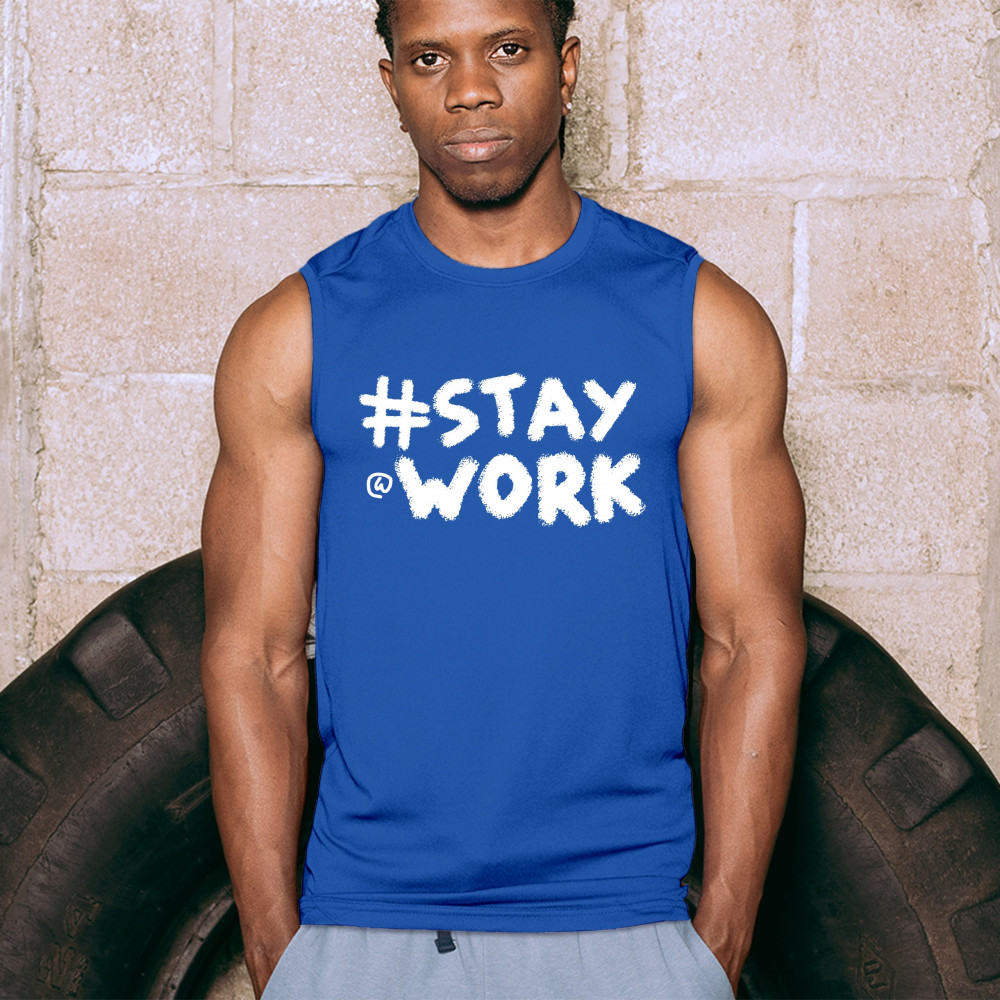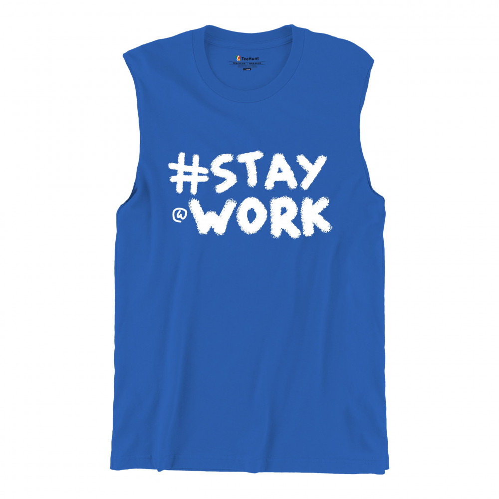 STAY AT WORK FUNNY ELON MUSK TWEET PARODY muscle shirt liberal sarcasm men's royal blue