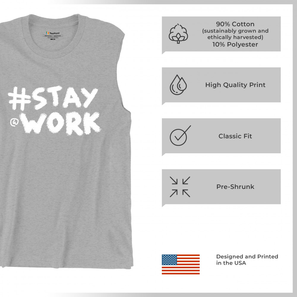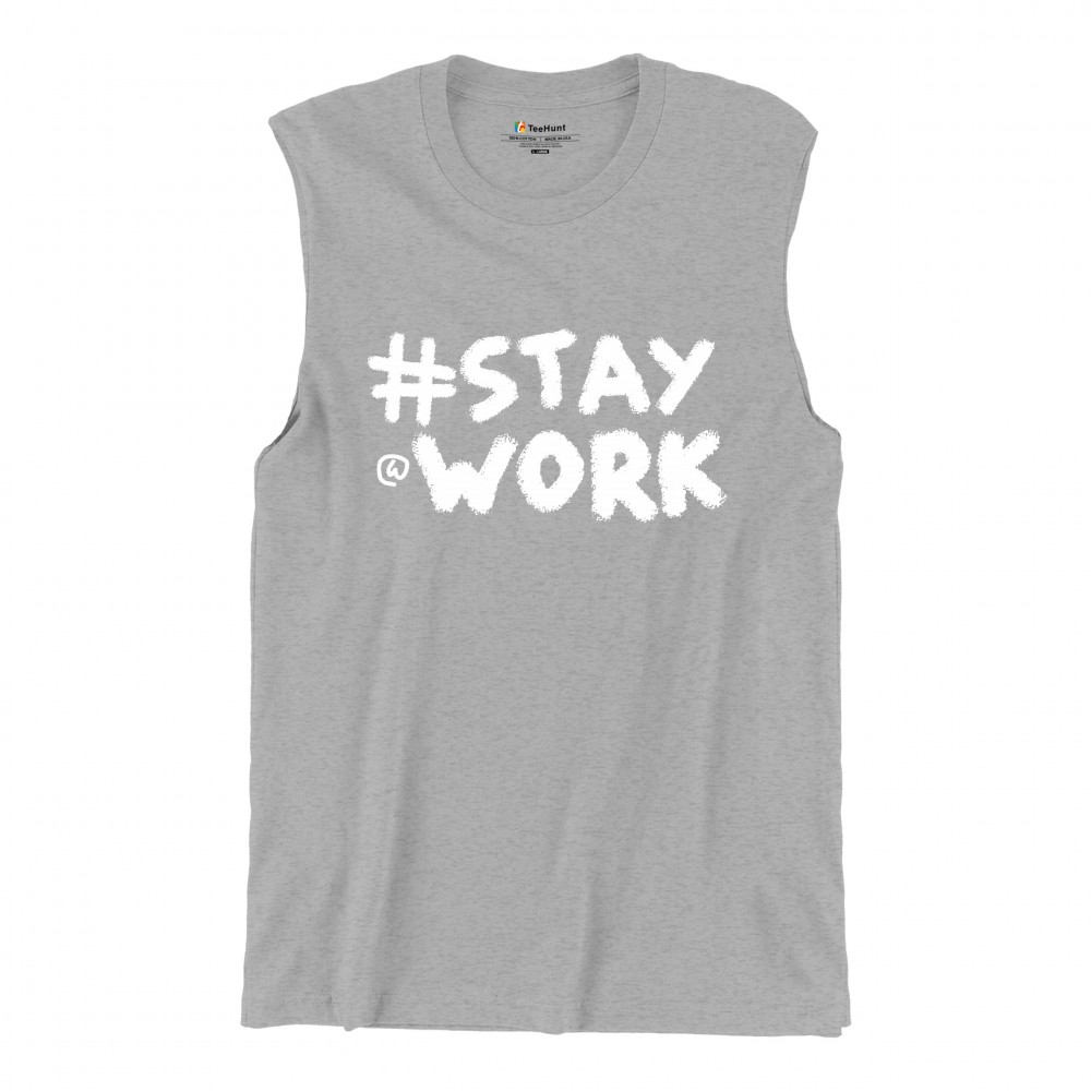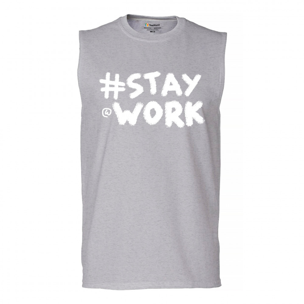 STAY AT WORK FUNNY ELON MUSK TWEET PARODY muscle shirt liberal sarcasm men's gray