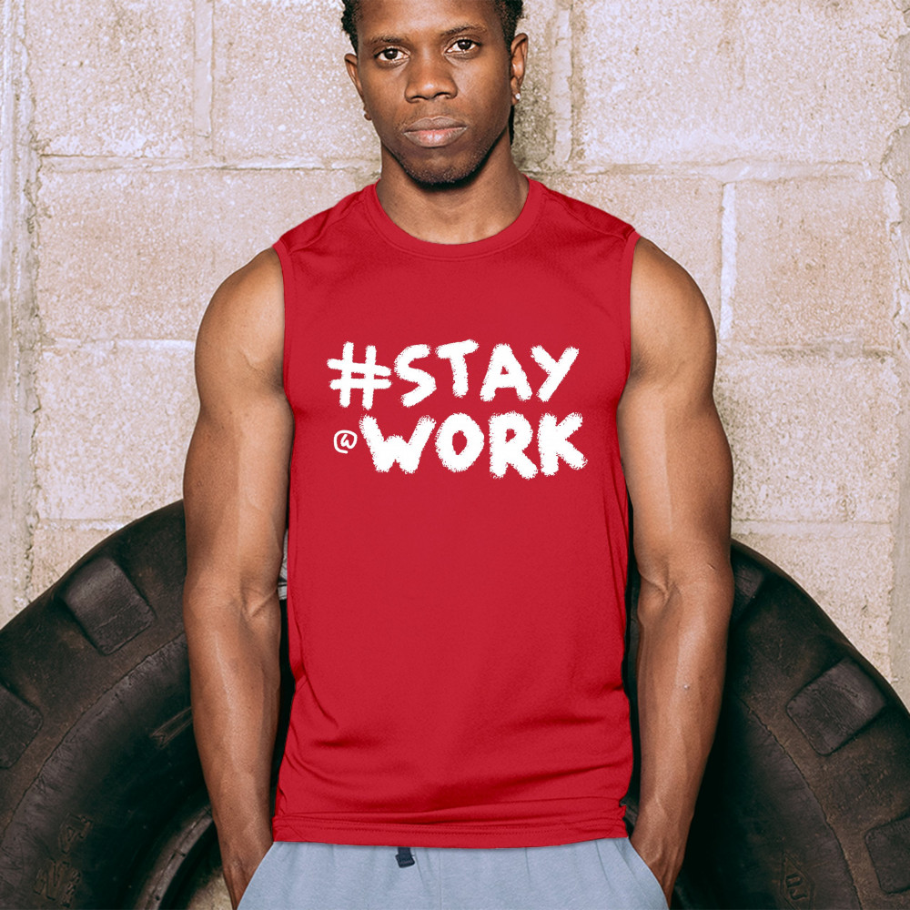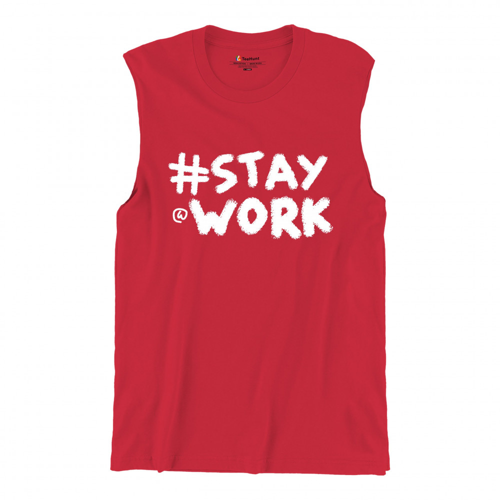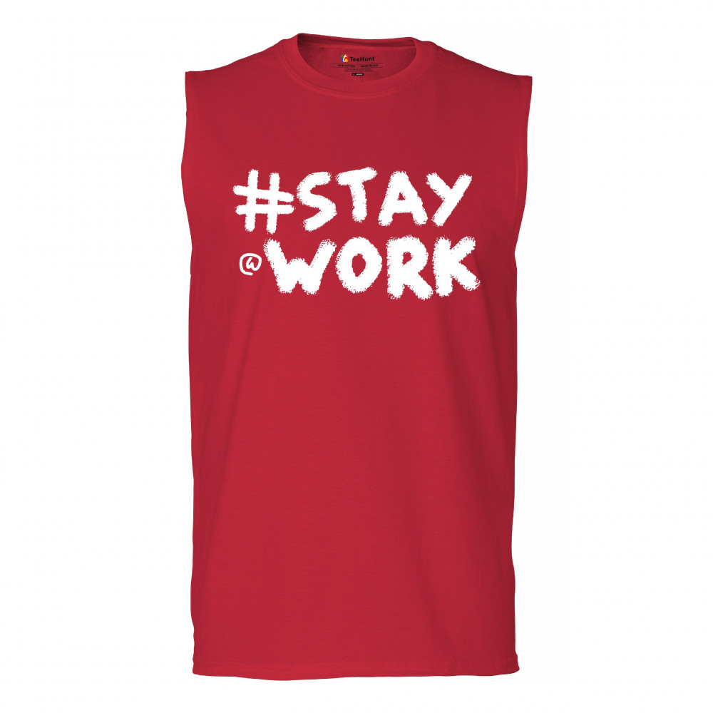 STAY AT WORK FUNNY ELON MUSK TWEET PARODY muscle shirt liberal sarcasm men's red