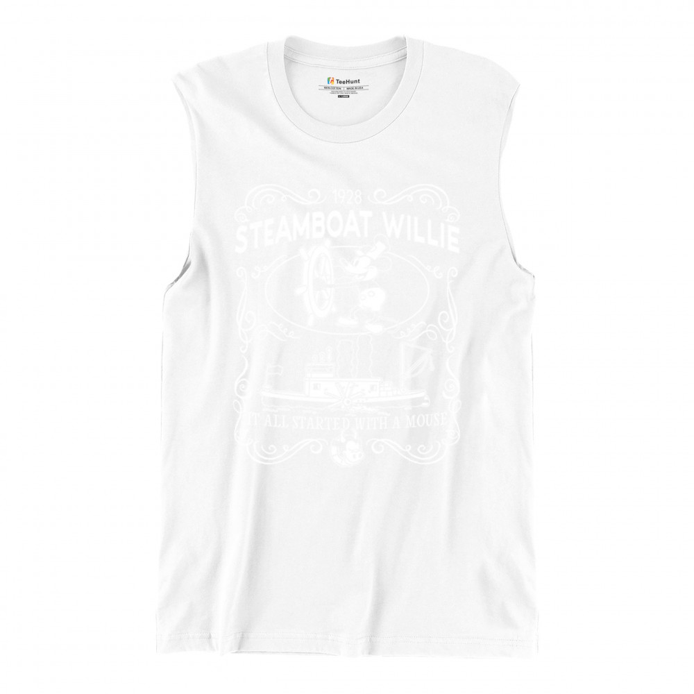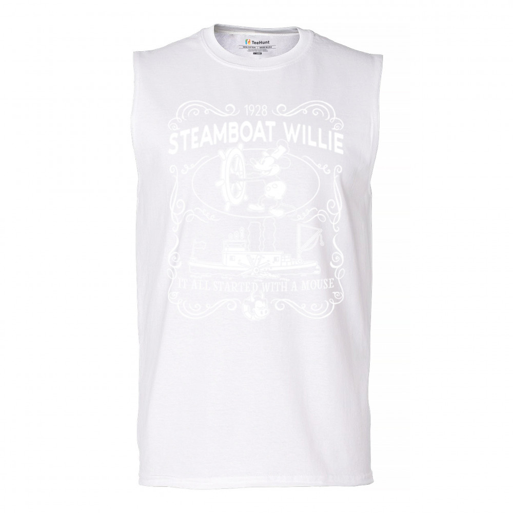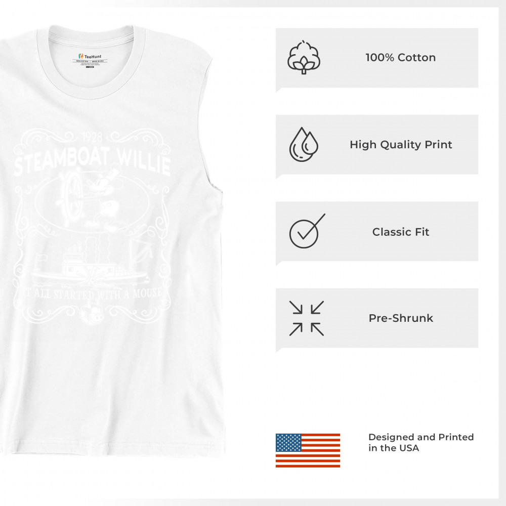 Set sail through the annals of animation as Steamboat Willie commands the vessel, echoing the timeless refrain, 'It all began with a mouse.