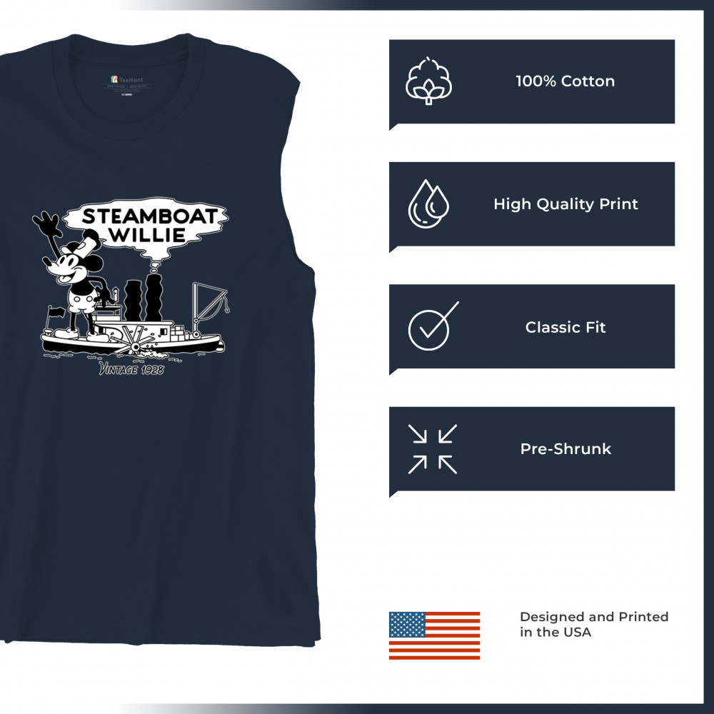 Channel the charm of a bygone era with our 'Steamboat Willie Vintage 1928' tee, paying tribute to this beloved American classic. Perfect for beach days and family vacations alike, this design evokes feelings of nostalgia and whimsy. Let Steamboat Willie i