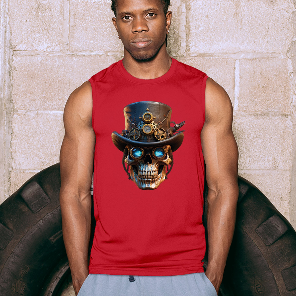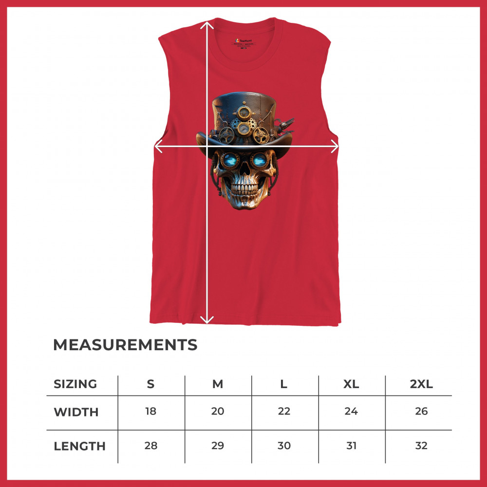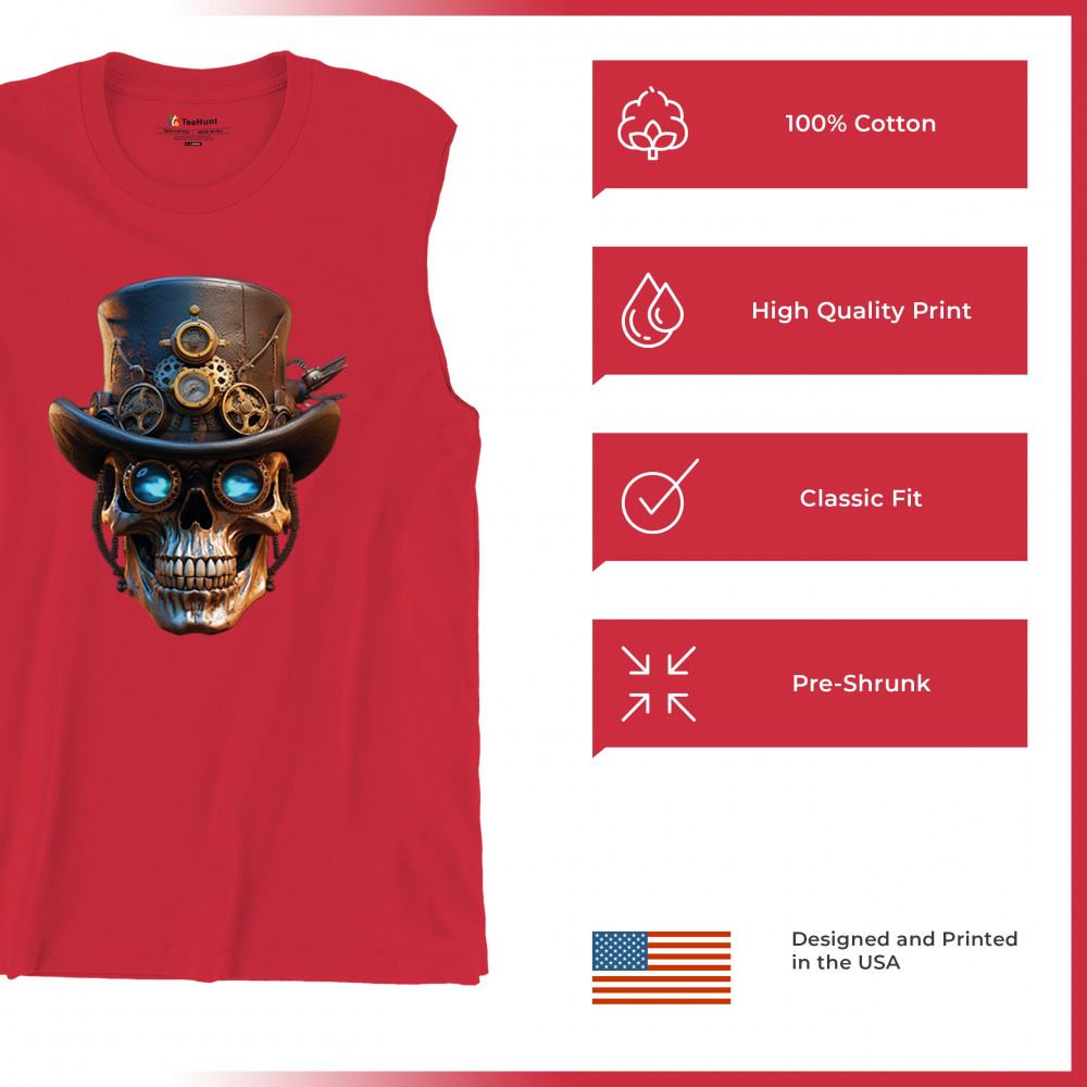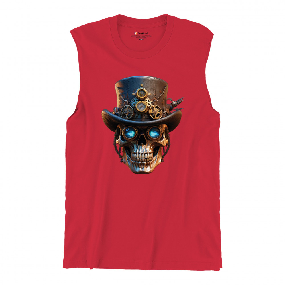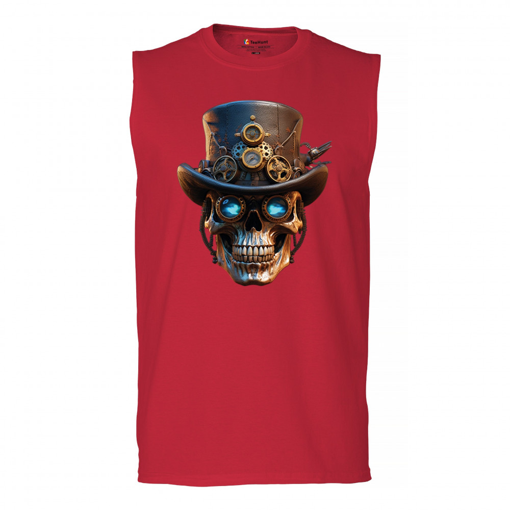 Steampunk skull shirt with gothic retro-futurism. Perfect for Halloween, cosplay, biker rallies, and edgy rebel fashion lovers.