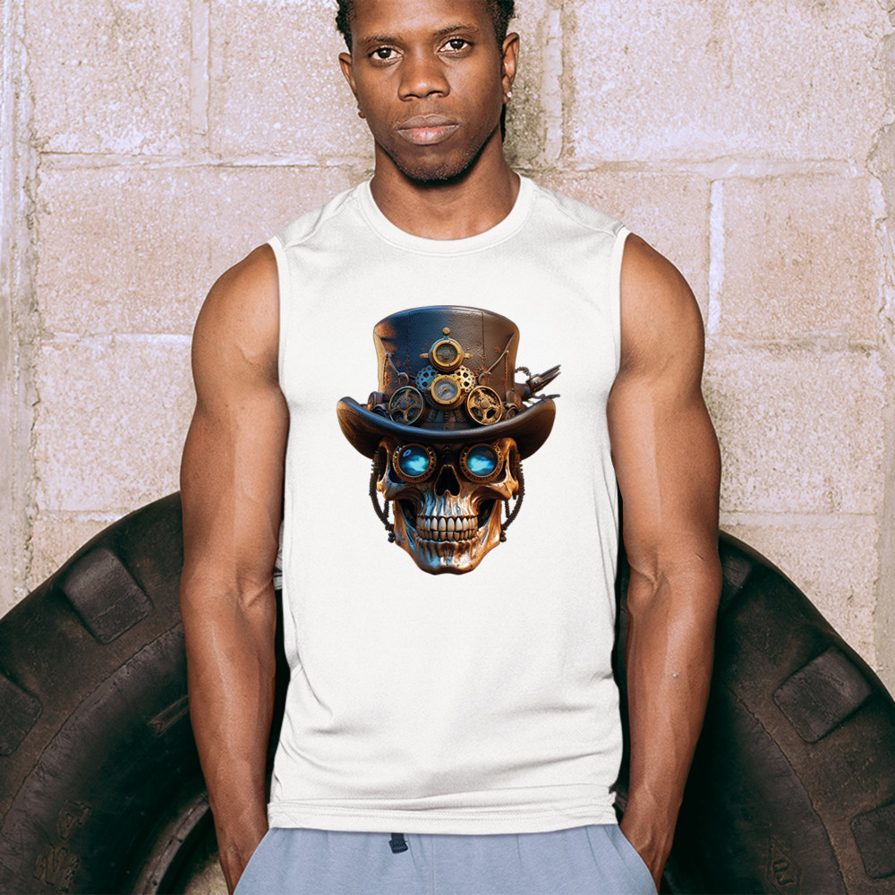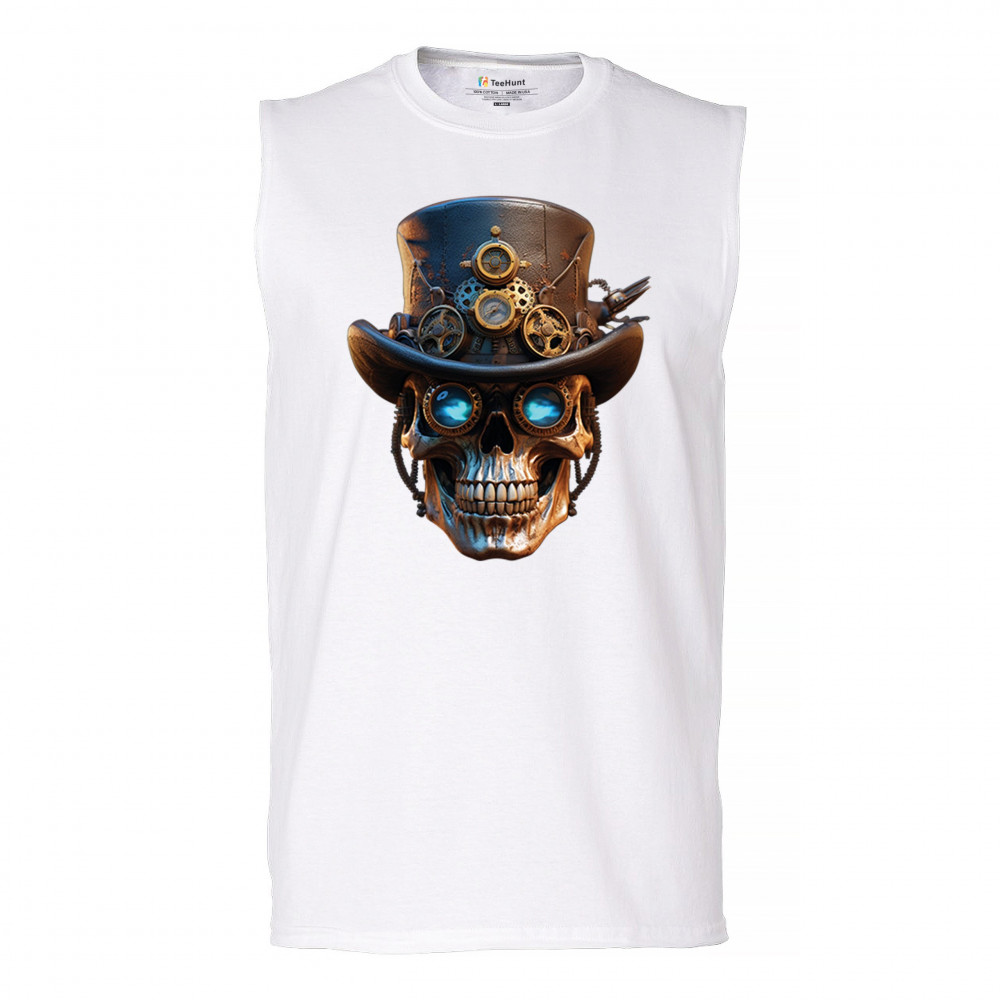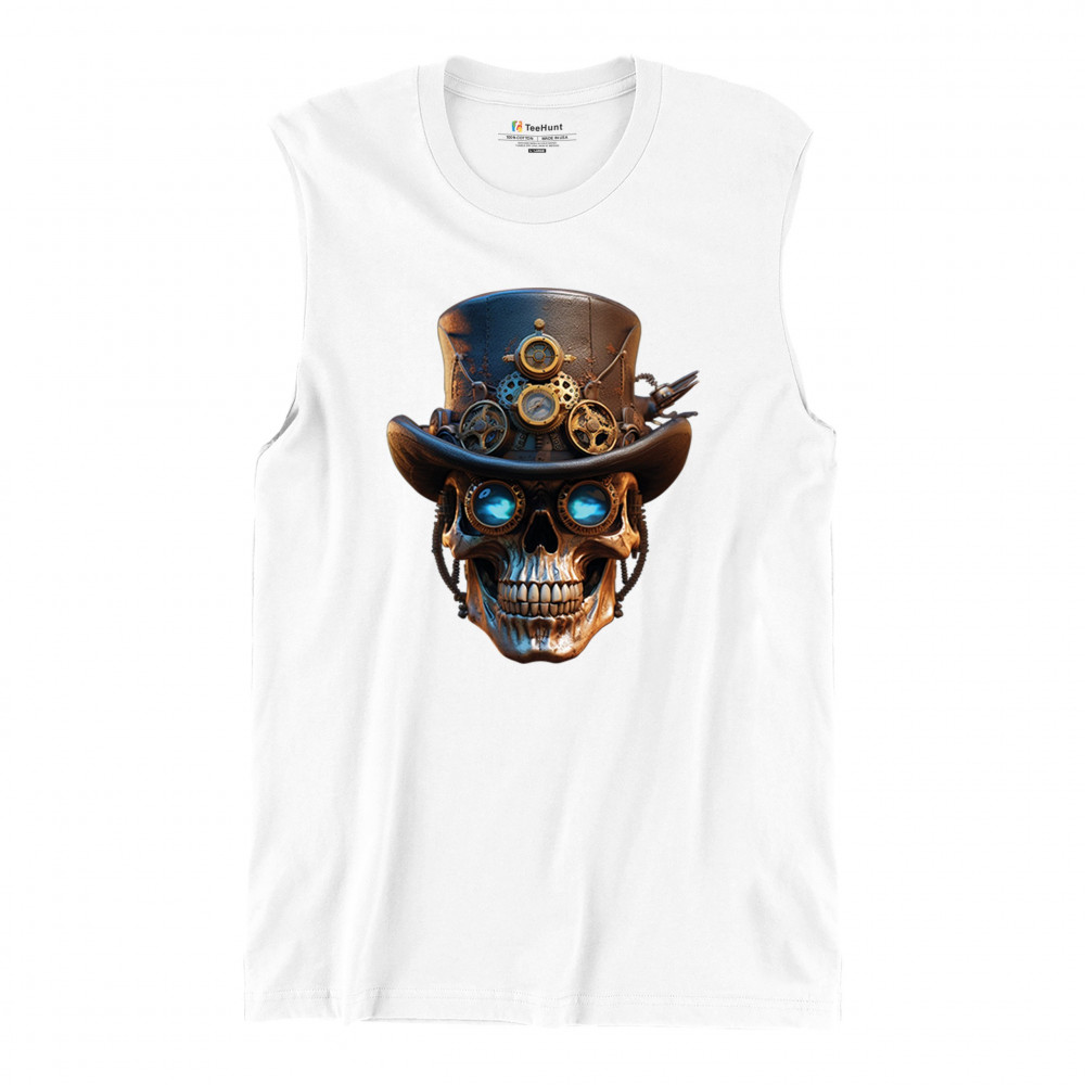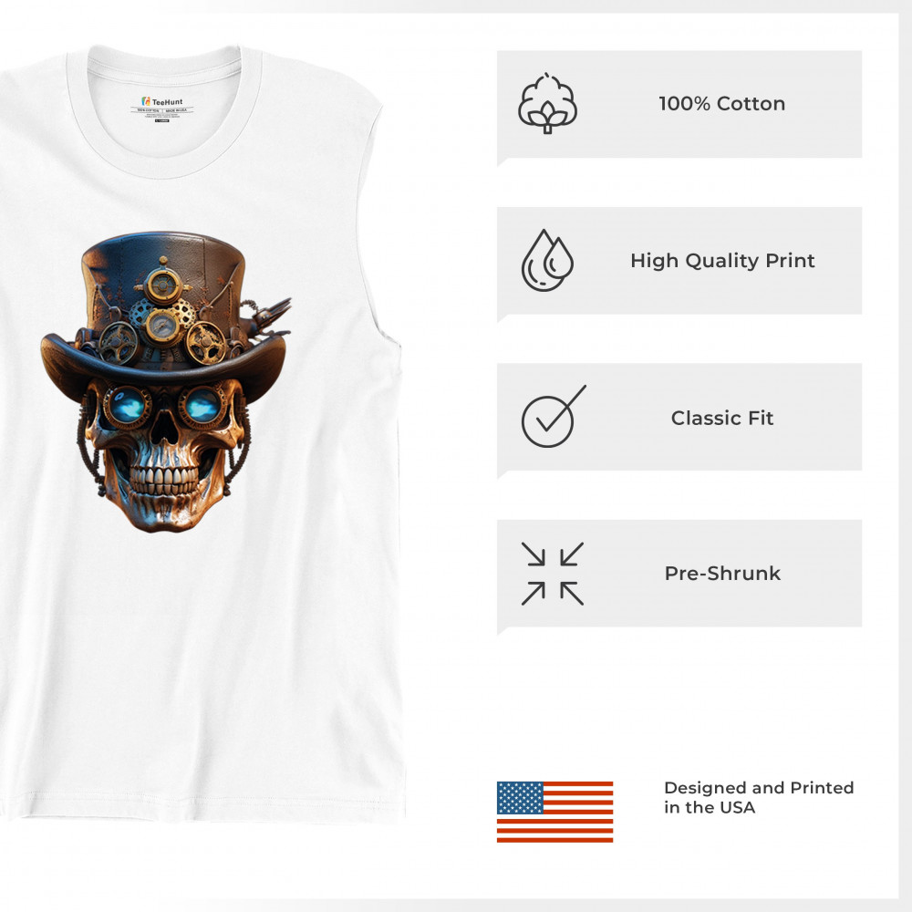 Steampunk skull shirt with gothic retro-futurism. Perfect for Halloween, cosplay, biker rallies, and edgy rebel fashion lovers.