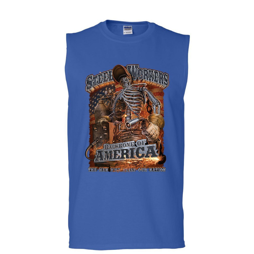 STEELWORKERS - BACKBONE OF AMERICA steel workers backbone of america muscle shirt welding iron metal sleeveless blue