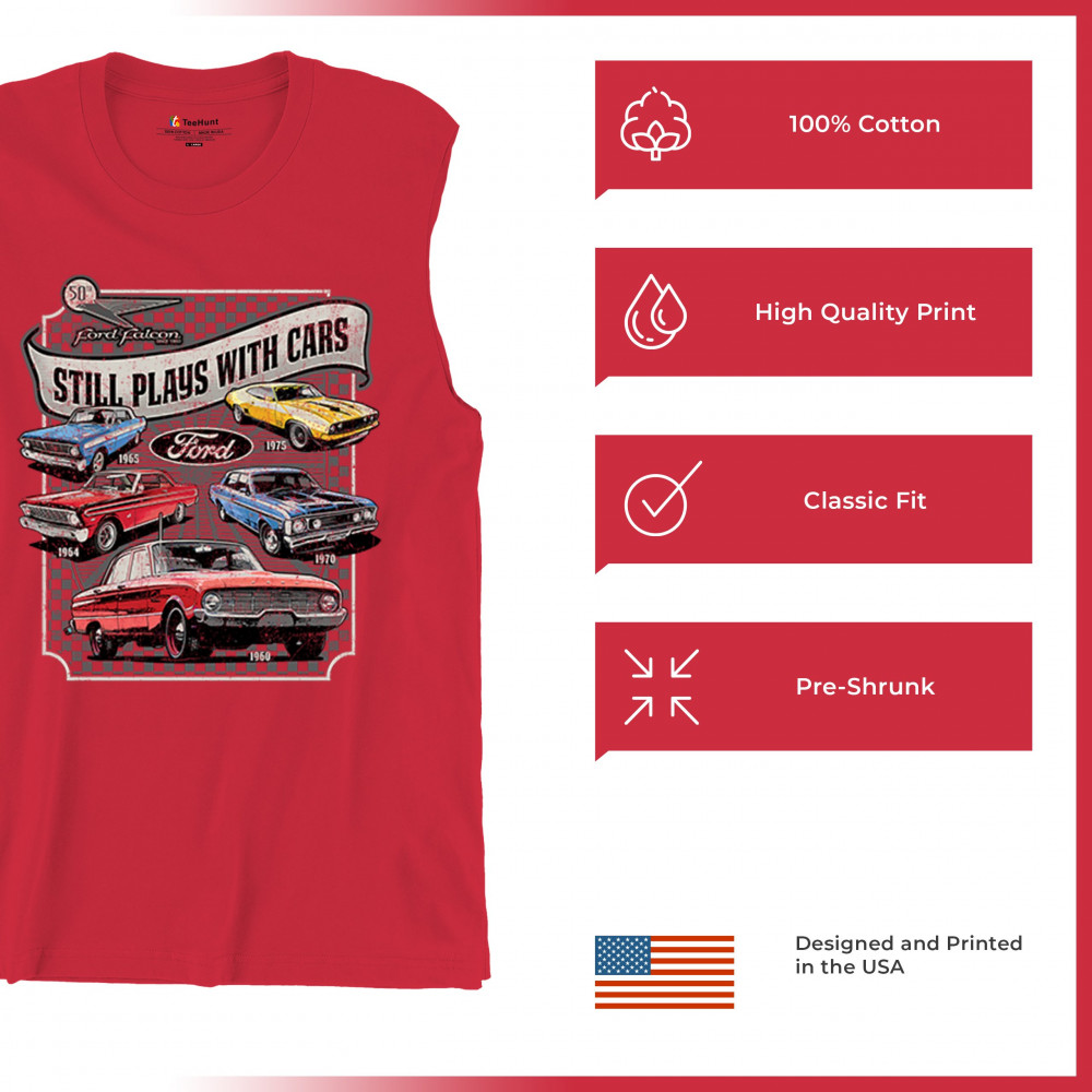 Still Plays With Cars pays tribute to the Ford Falcon, showcasing legendary models from the 60s and 70s for true vintage car lovers. Perfect for gearheads, hot rod fans, and classic car collectors, this design celebrates retro automobile culture, vintage horsepower, and old school rides. A great value piece for anyone devoted to the classic car scene.