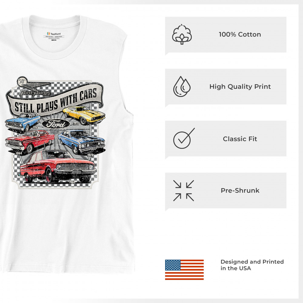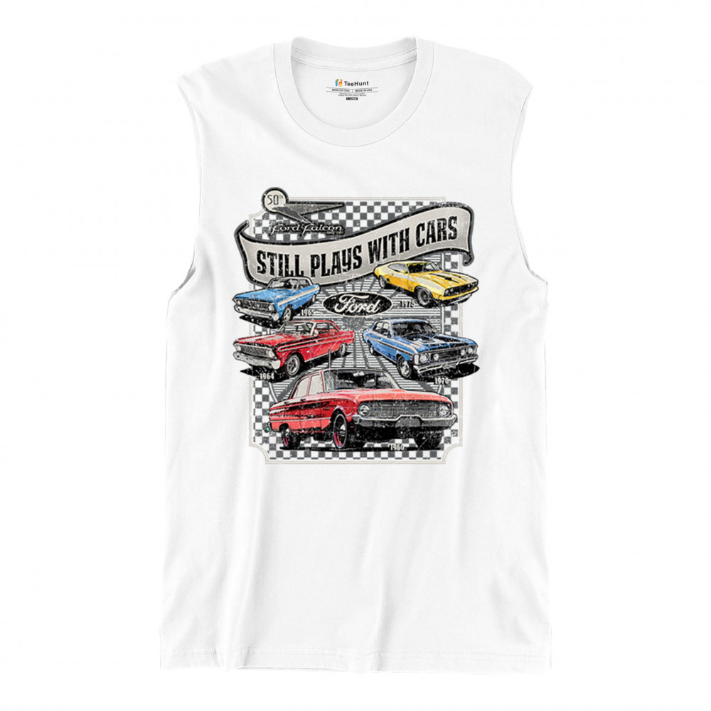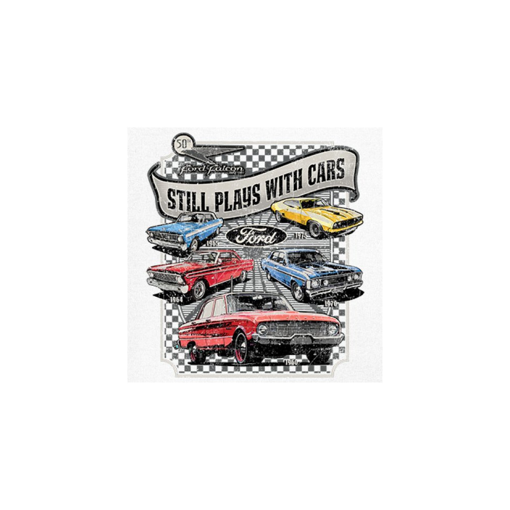Still Plays With Cars pays tribute to the Ford Falcon, showcasing legendary models from the 60s and 70s for true vintage car lovers. Perfect for gearheads, hot rod fans, and classic car collectors, this design celebrates retro automobile culture, vintage horsepower, and old school rides. A great value piece for anyone devoted to the classic car scene.