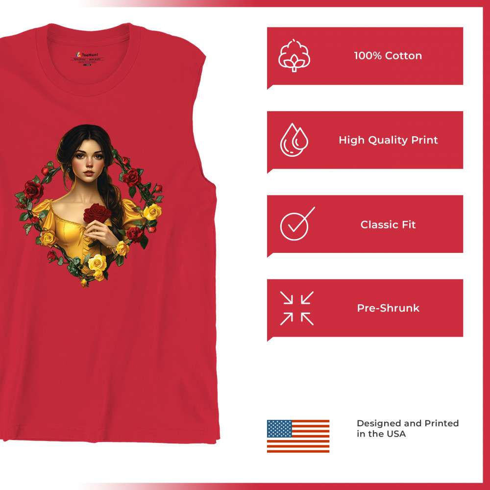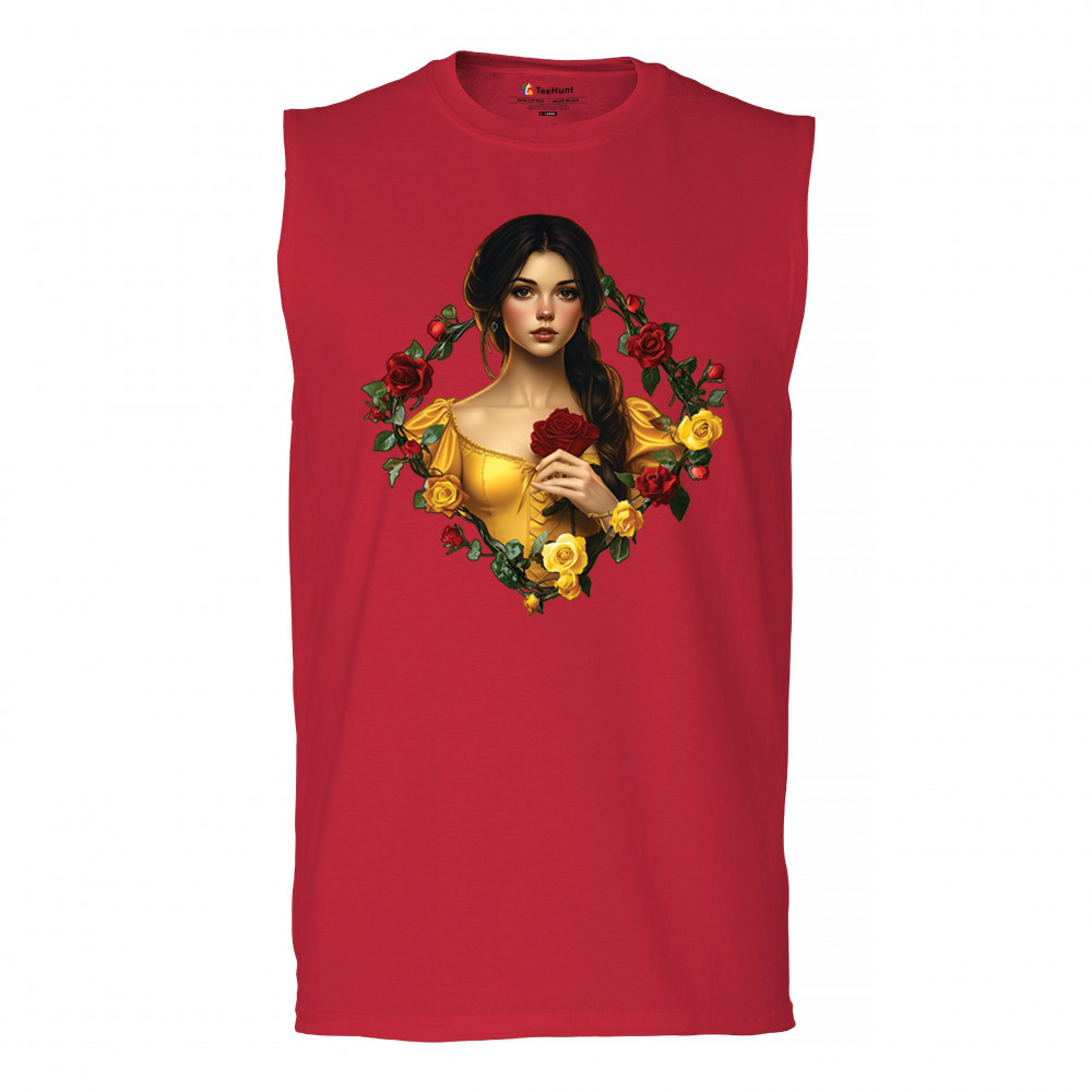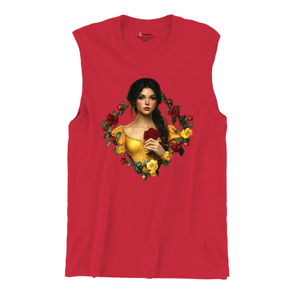 Inspired by classic fairytales, this design features a girl in a yellow gown holding a red rose, framed by rich red and yellow roses. A tribute to Beauty and the Beast, it radiates warmth, romance, and timeless fantasy. Perfect for storybook lovers, enchanted art collectors, or those drawn to magical, symbolic imagery filled with beauty and grace.