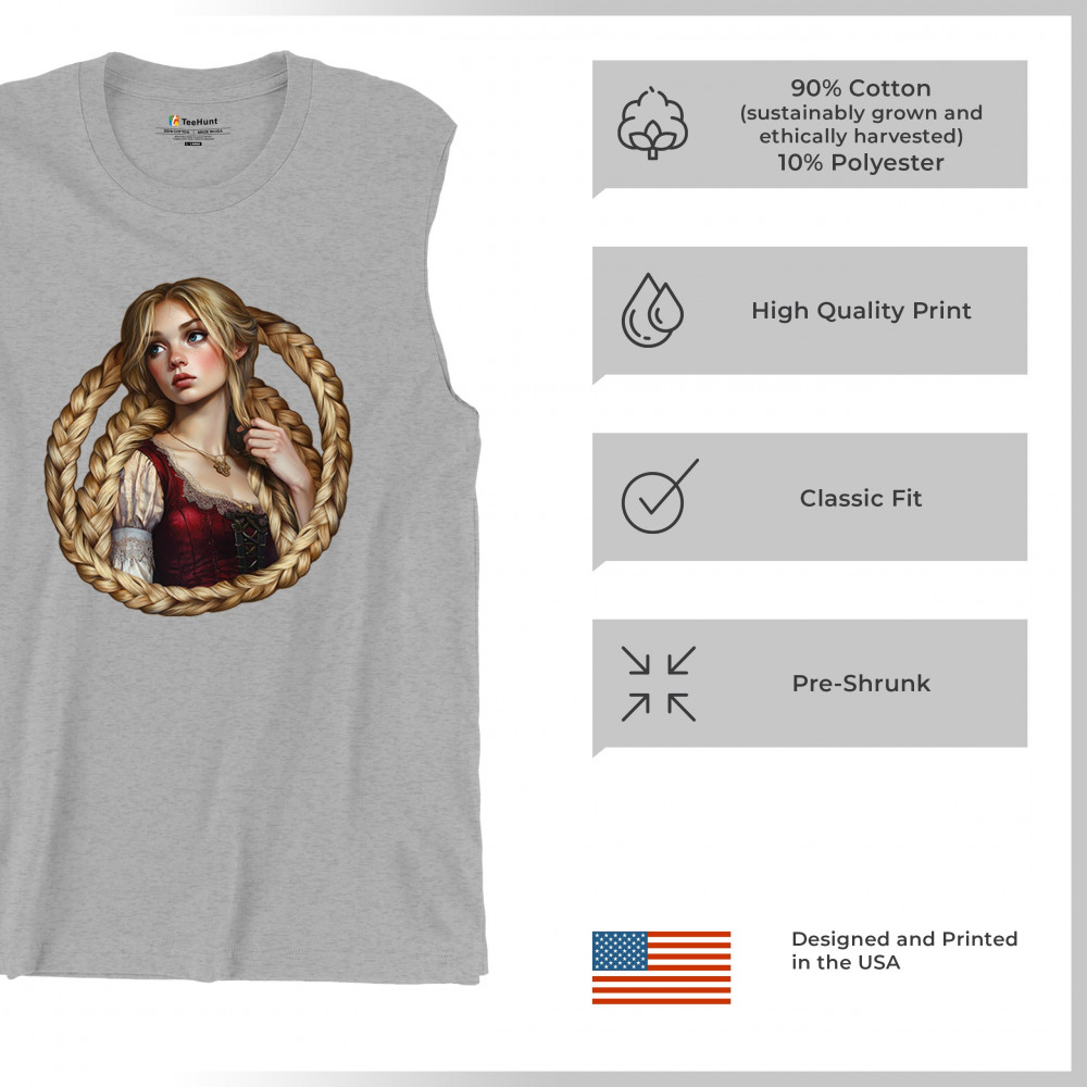 A dreamy design featuring a blonde girl with long braided hair encircling her like a frame. With vintage dress details and a wistful look, this artwork channels the essence of fairytales, romantic legends, and gentle feminine power. Ideal for fantasy lovers, folklore fans, and collectors of magical storybook themes.