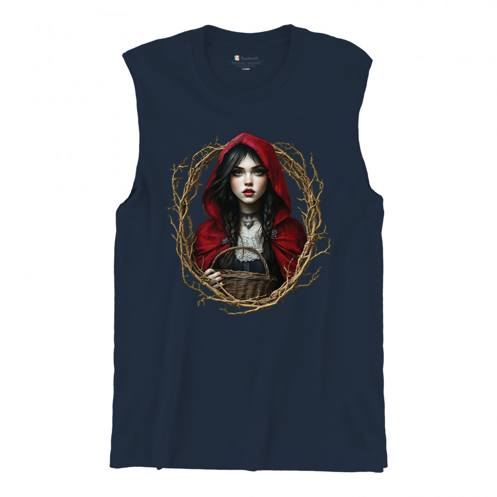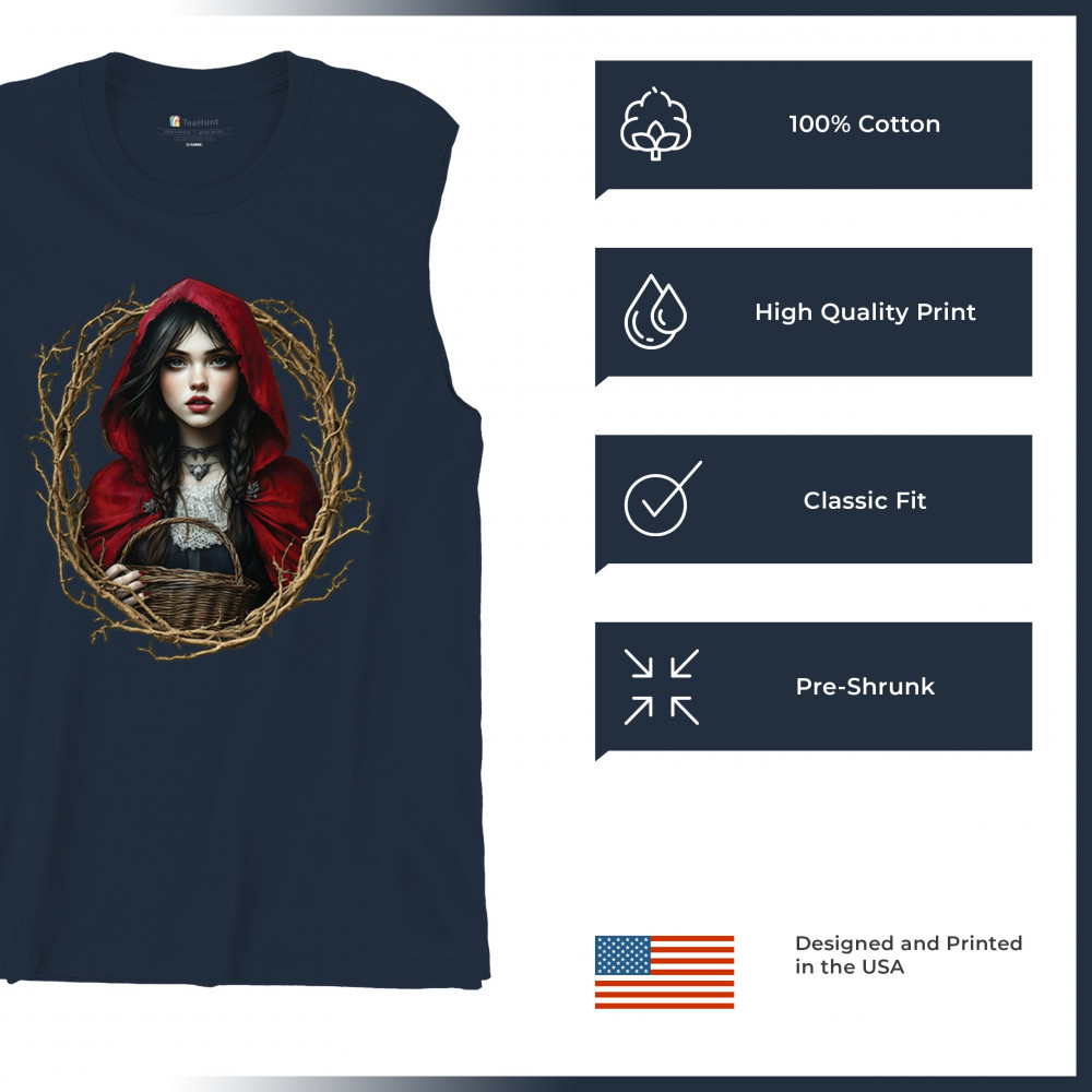 Step into a shadowy fairytale with this gothic design featuring a red-cloaked girl and twisted forest branches. Evoking themes from Red Riding Hood and folklore magic, it’s rich in fantasy, mystery, and dark aesthetic. Perfect for fantasy lovers, dark romantics, and storybook dreamers drawn to enchanted paths and eerie tales.