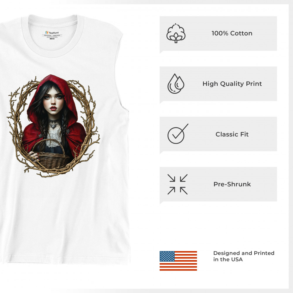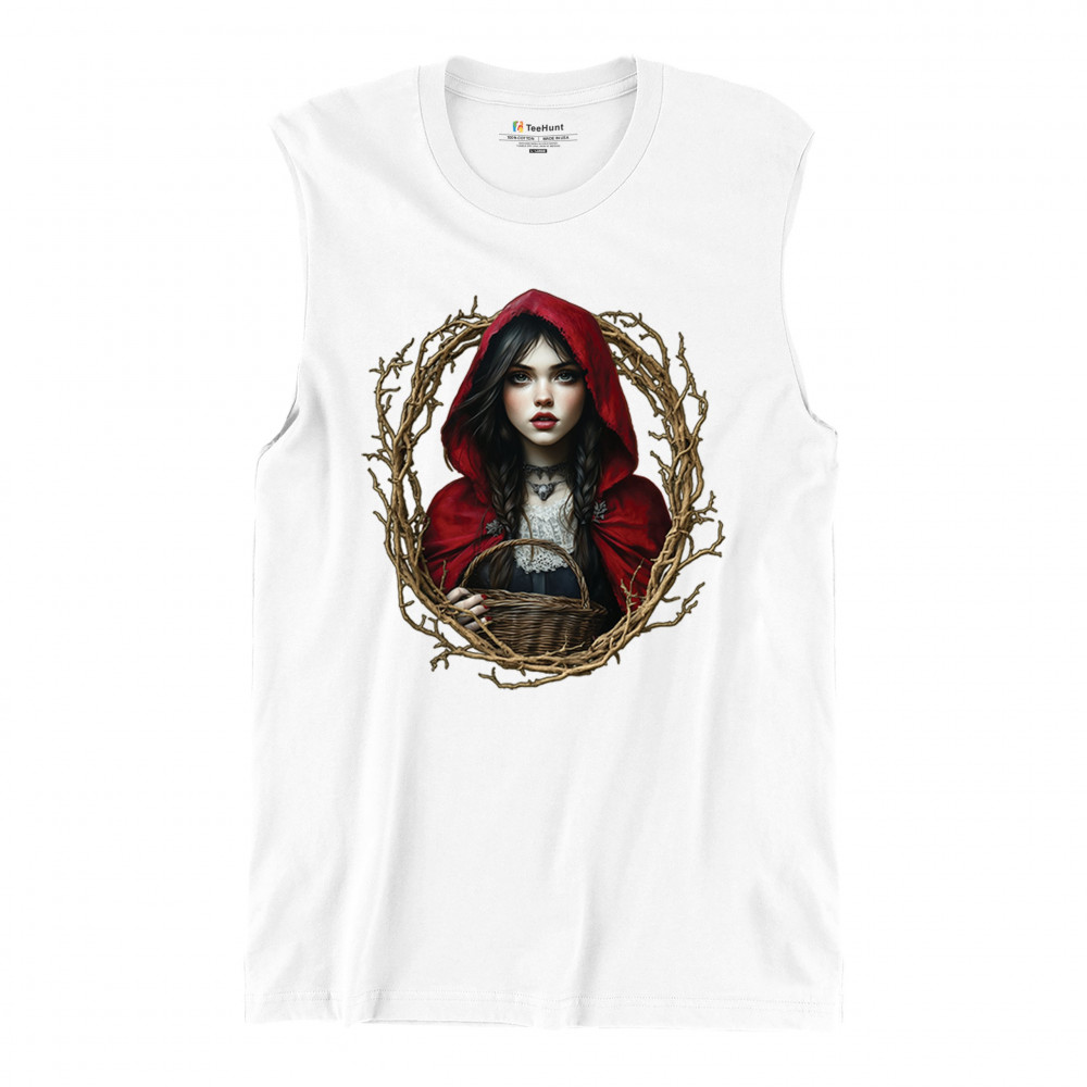 Step into a shadowy fairytale with this gothic design featuring a red-cloaked girl and twisted forest branches. Evoking themes from Red Riding Hood and folklore magic, it’s rich in fantasy, mystery, and dark aesthetic. Perfect for fantasy lovers, dark romantics, and storybook dreamers drawn to enchanted paths and eerie tales.