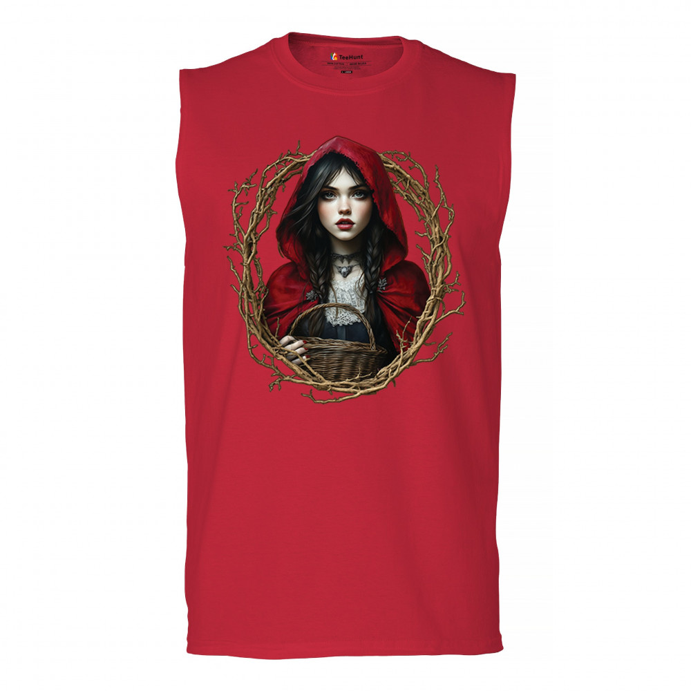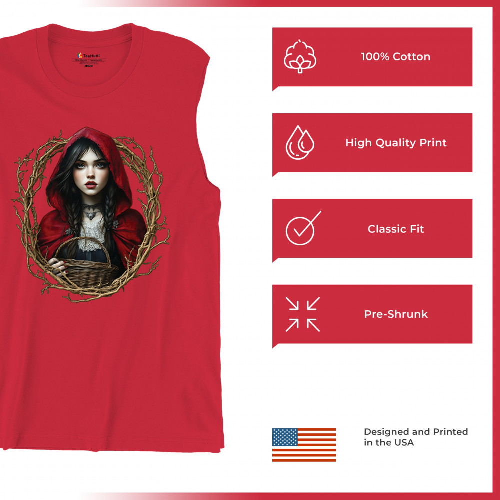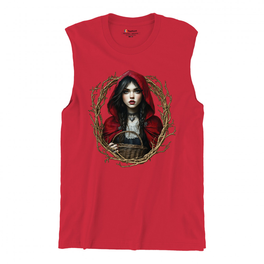 Step into a shadowy fairytale with this gothic design featuring a red-cloaked girl and twisted forest branches. Evoking themes from Red Riding Hood and folklore magic, it’s rich in fantasy, mystery, and dark aesthetic. Perfect for fantasy lovers, dark romantics, and storybook dreamers drawn to enchanted paths and eerie tales.