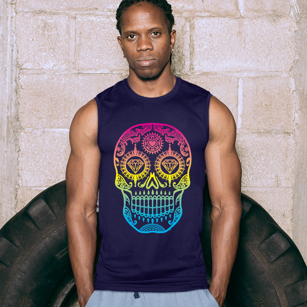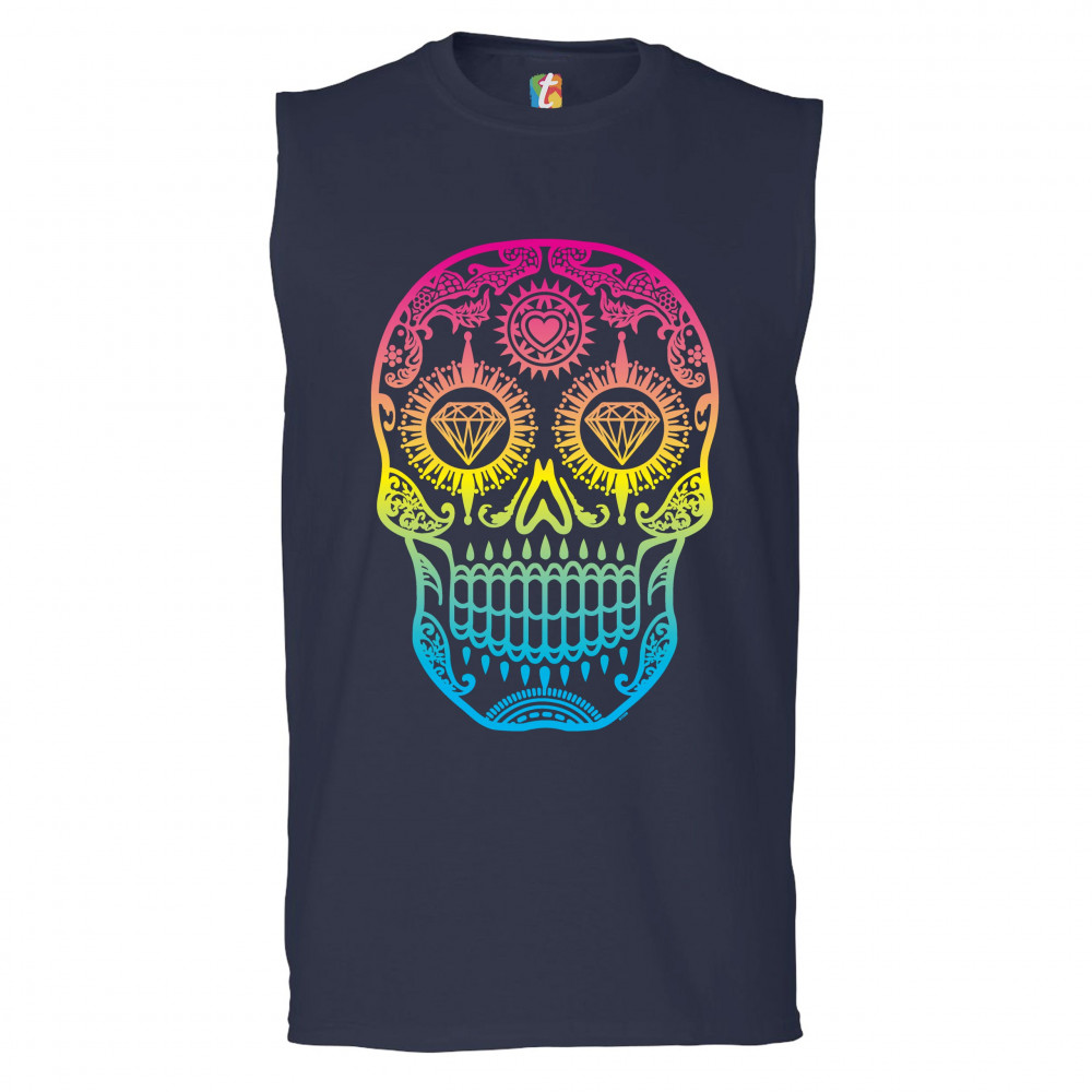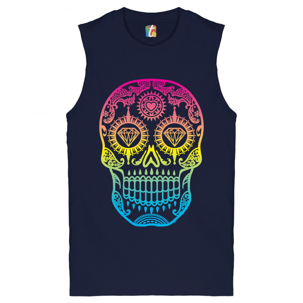 SUGAR SKULL CALAVERA DIAMOND EYES muscle shirt day of the dead men's navy blue