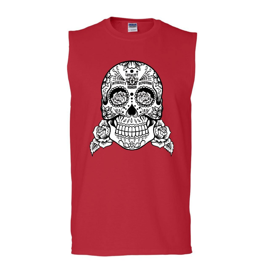 SUGAR SKULL muscle shirt loyalty integrity devotion honor red